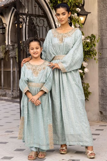 Jeem 2 piece kids luxury embroidered kaftan with belt – SGREEN