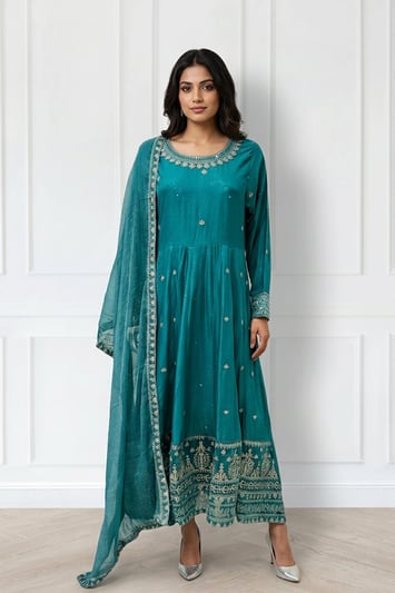 Almas Offer Eid premium 3 piece peplum collection – Teal