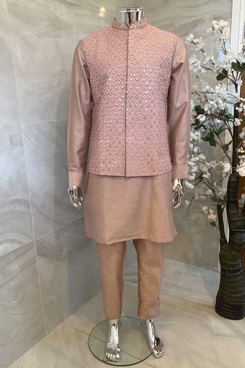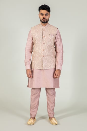 Men’s raw silk suit with embroidered waistcoat – Pink
