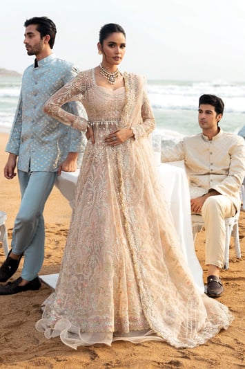 Dastangoi by Afrozeh 3 piece afsheen embroidered suit – Peach