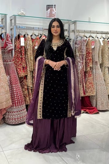 Gulnaar velvet premium collection lengha suit – Maroon