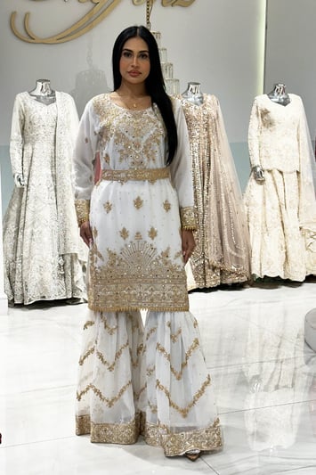 Sheeren luxury 3 piece banarsi sharara suit – Cream