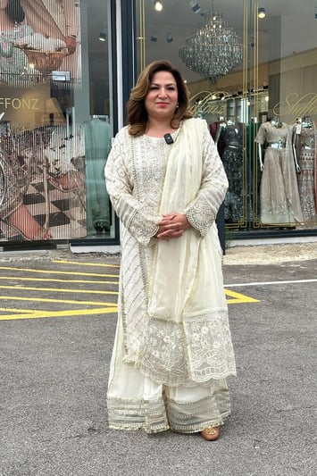 Ivana premium collection 3 piece embroidered plazo suit – Cream