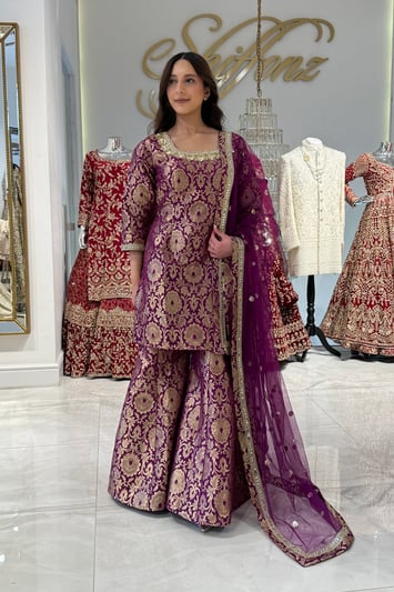 Sila luxe collection 3 piece embroidered gharara suit – Plum