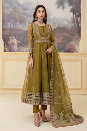 Maria B 3 piece crinkle tissue gown collection – Orange