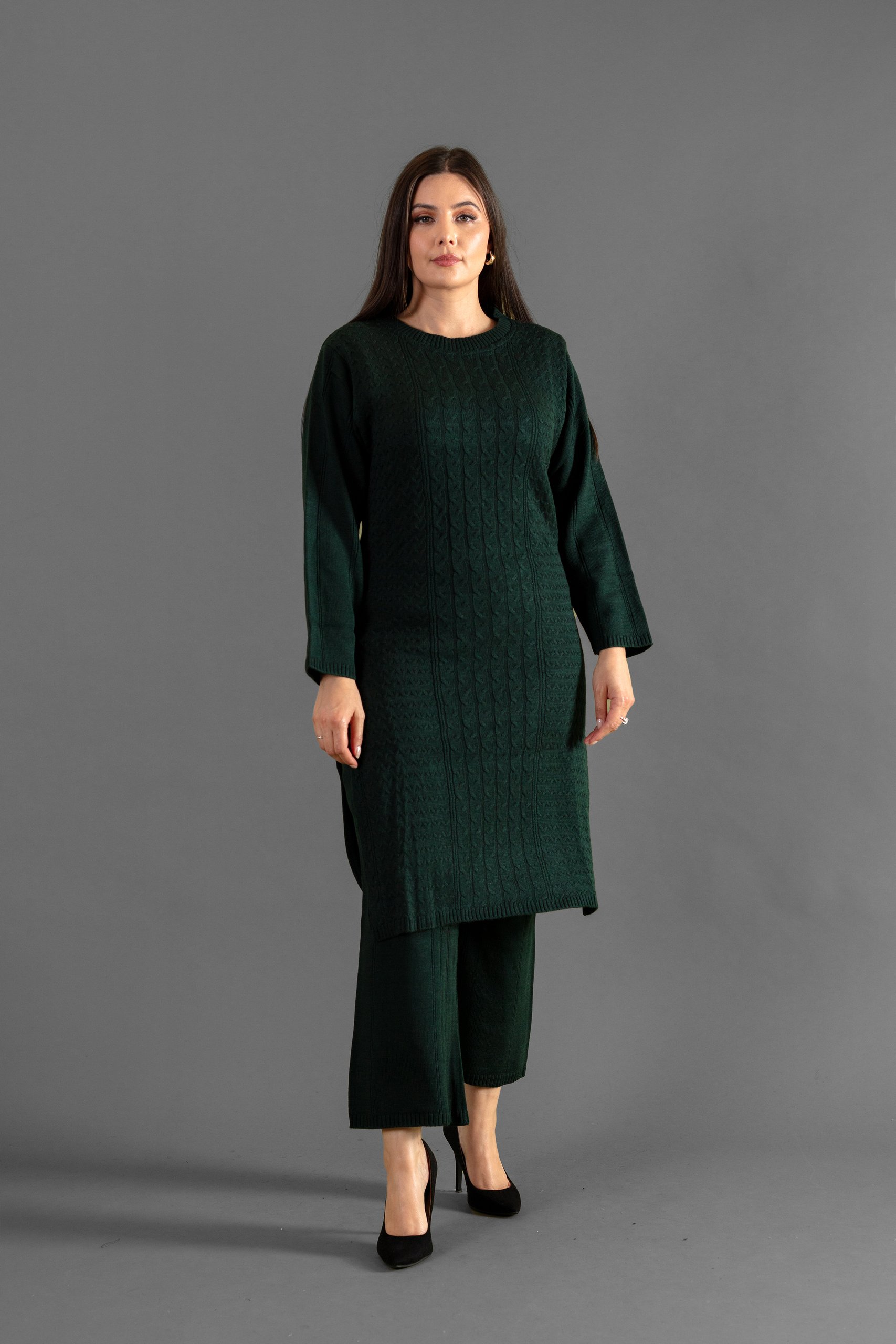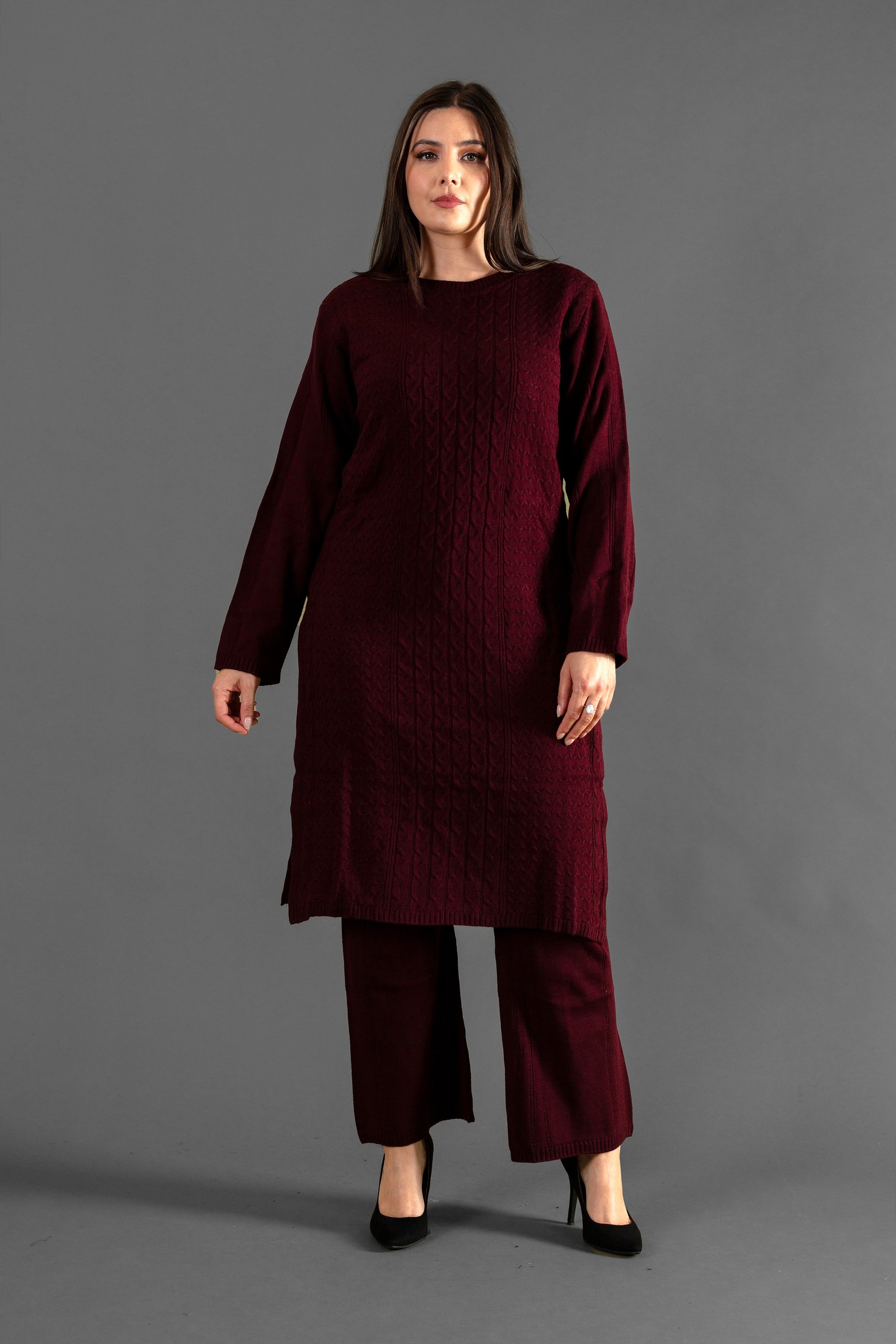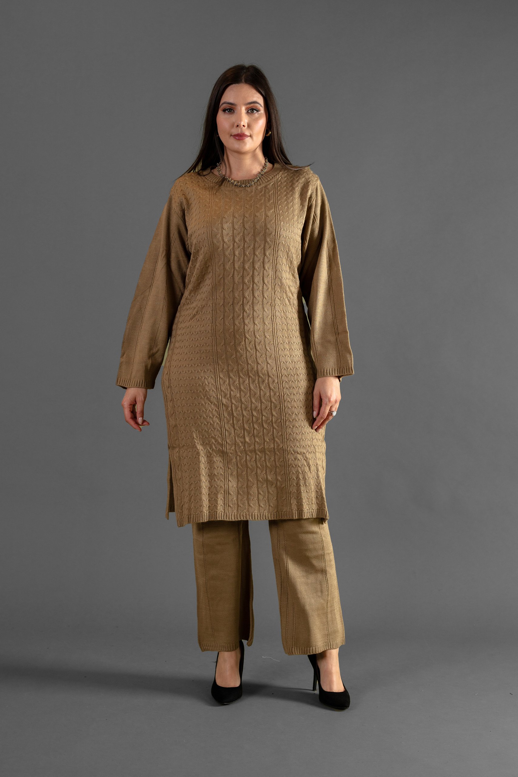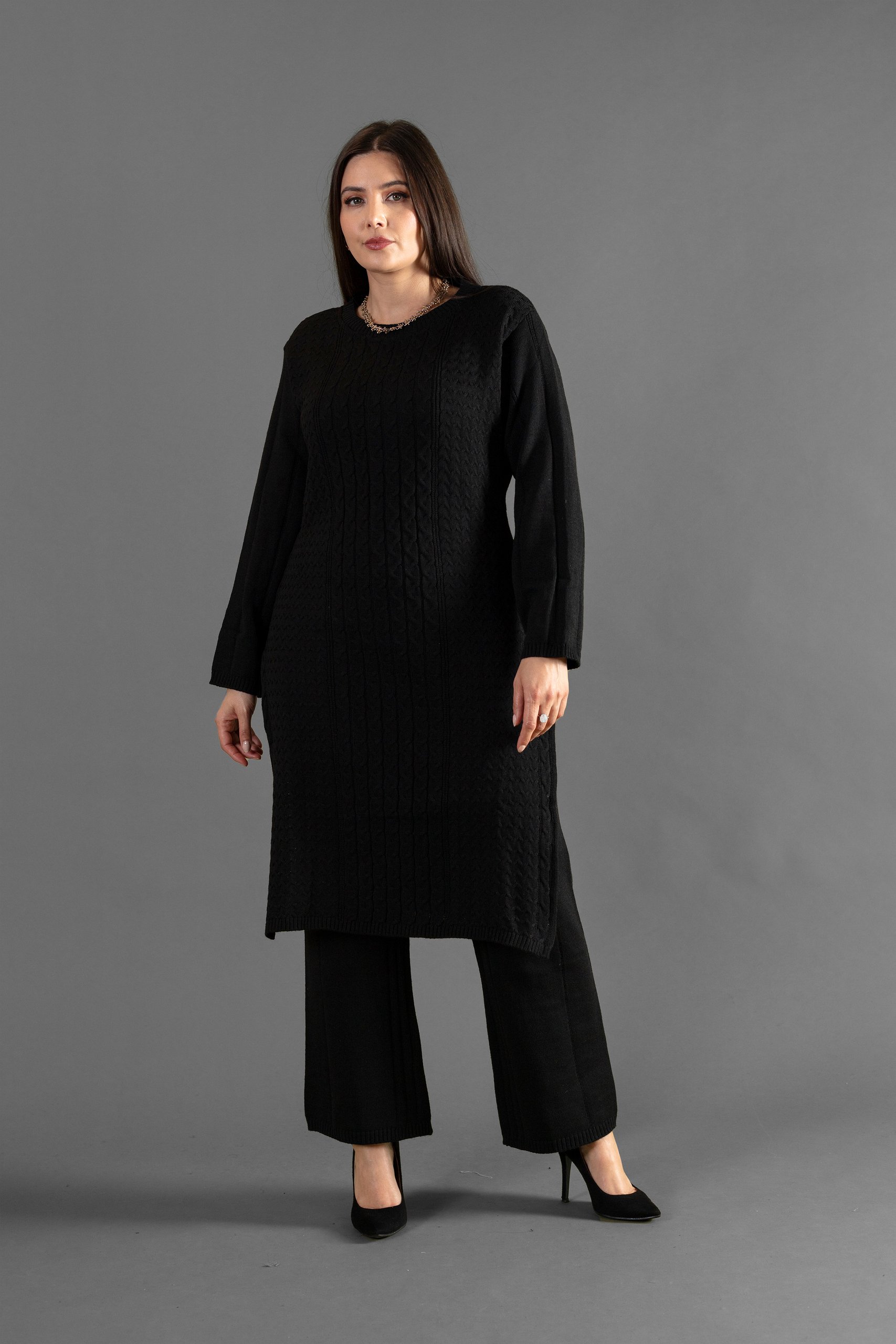 Get the cosy vibe in a knitted co-ord, this beautiful 2 piece knitwear co-ord set features a long length jumper with open sides and knitwear straight leg trousers. Perfect casual attire for this winter look.
