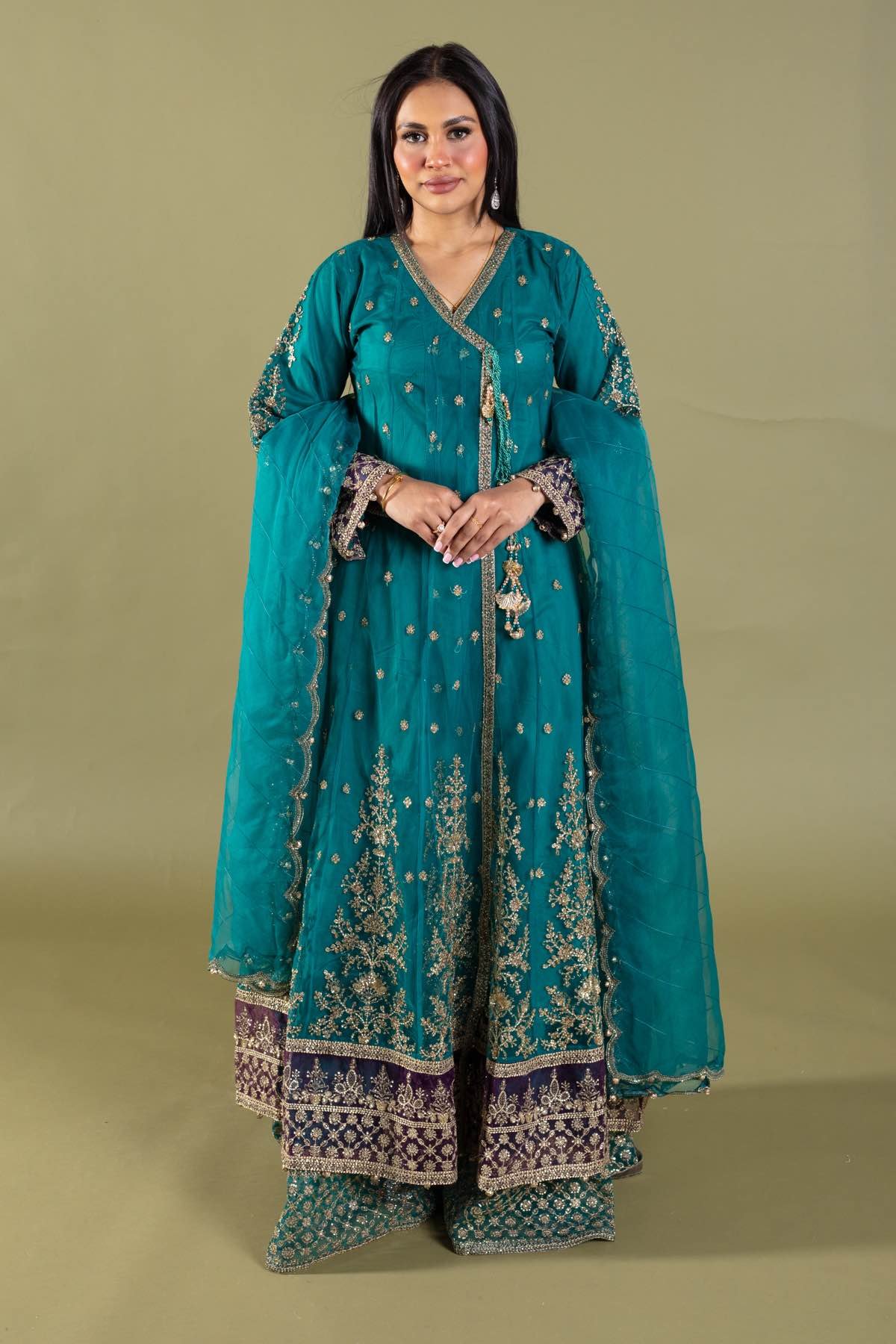 3 Piece angrakha style embroidered gown