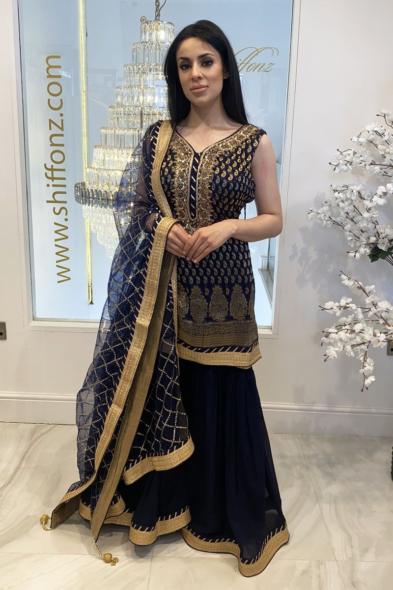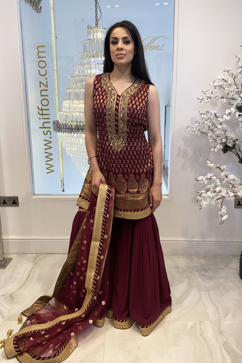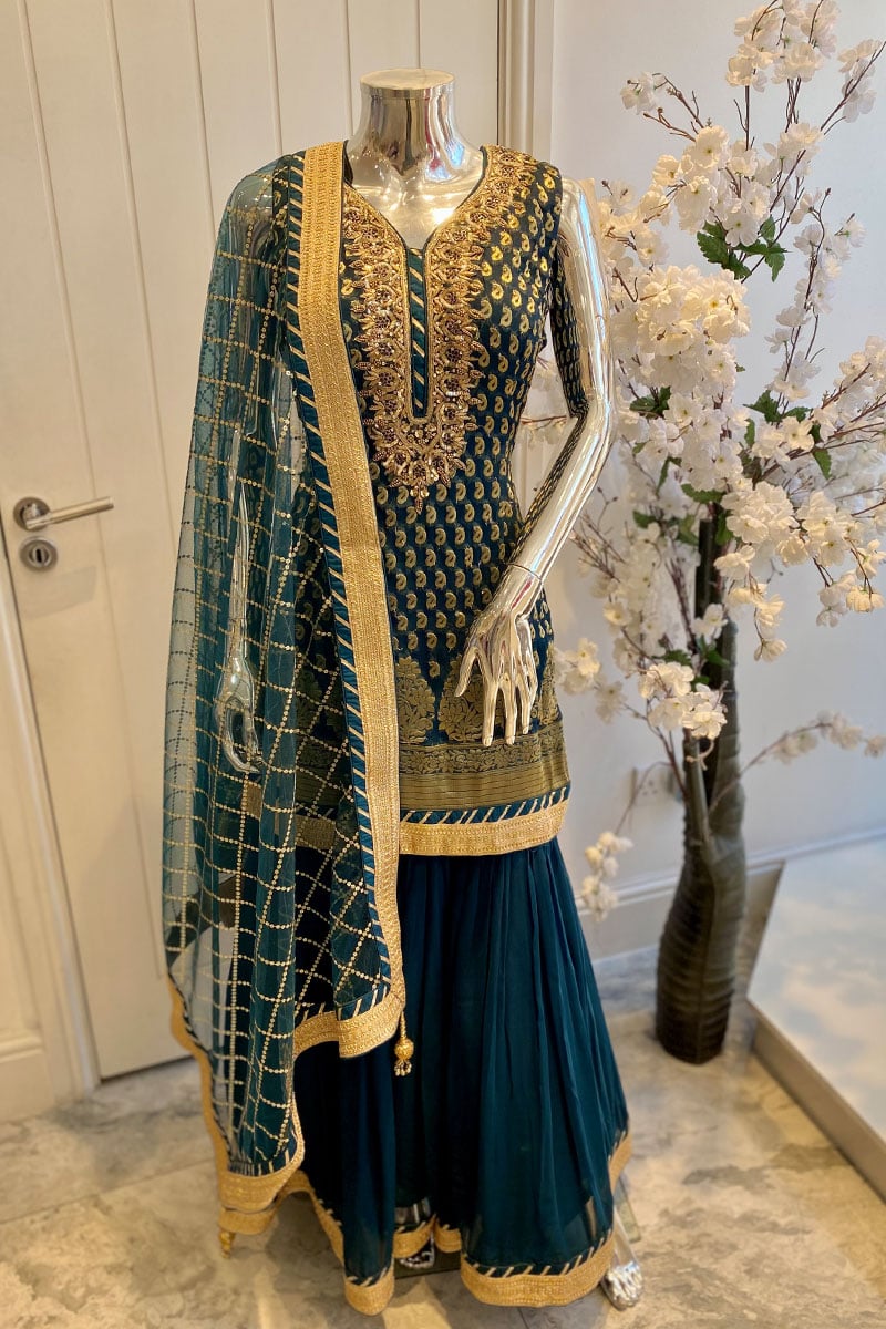 3 Piece banarasi embroidered gharara suit