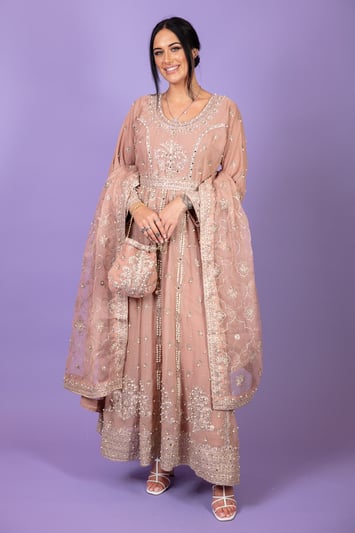 This beautiful 3 piece georgette suit features a straight shirt with sequence embroidery throughout the front and back with full length embroidered sleeves. It comes with a luxury sequence embroidered sharara on the georgette overlay and the look is finished with an embroidered georgette dupatta.