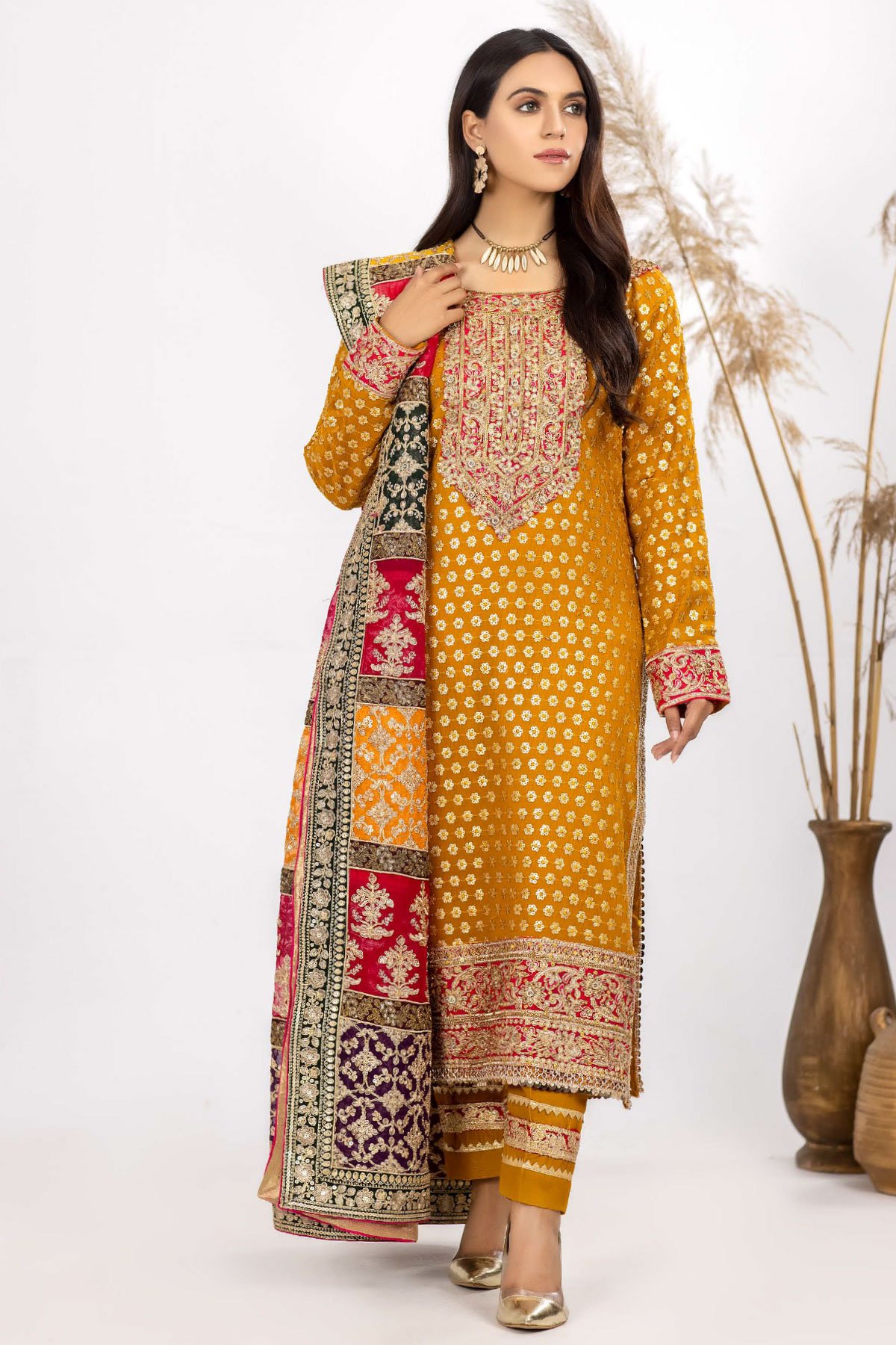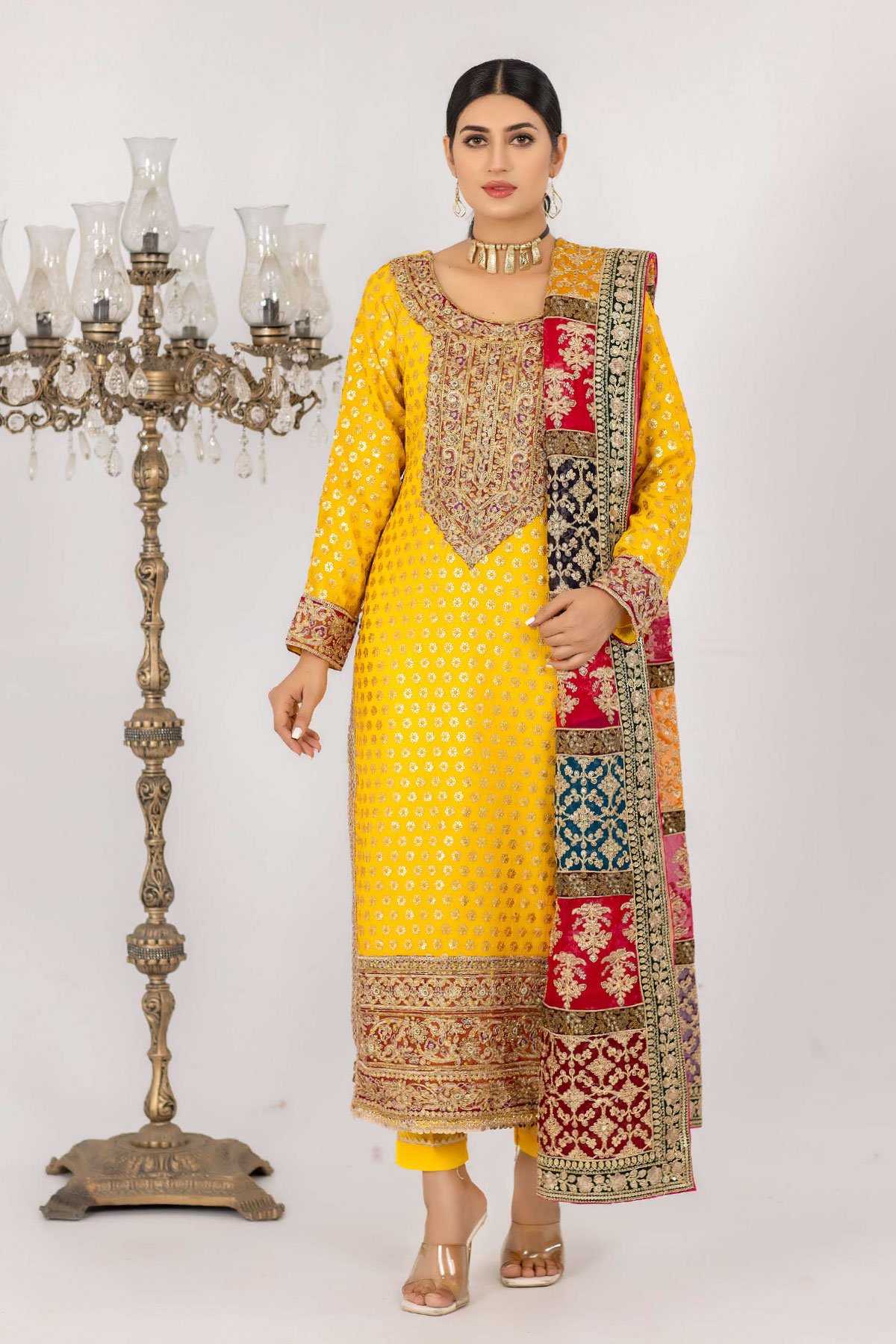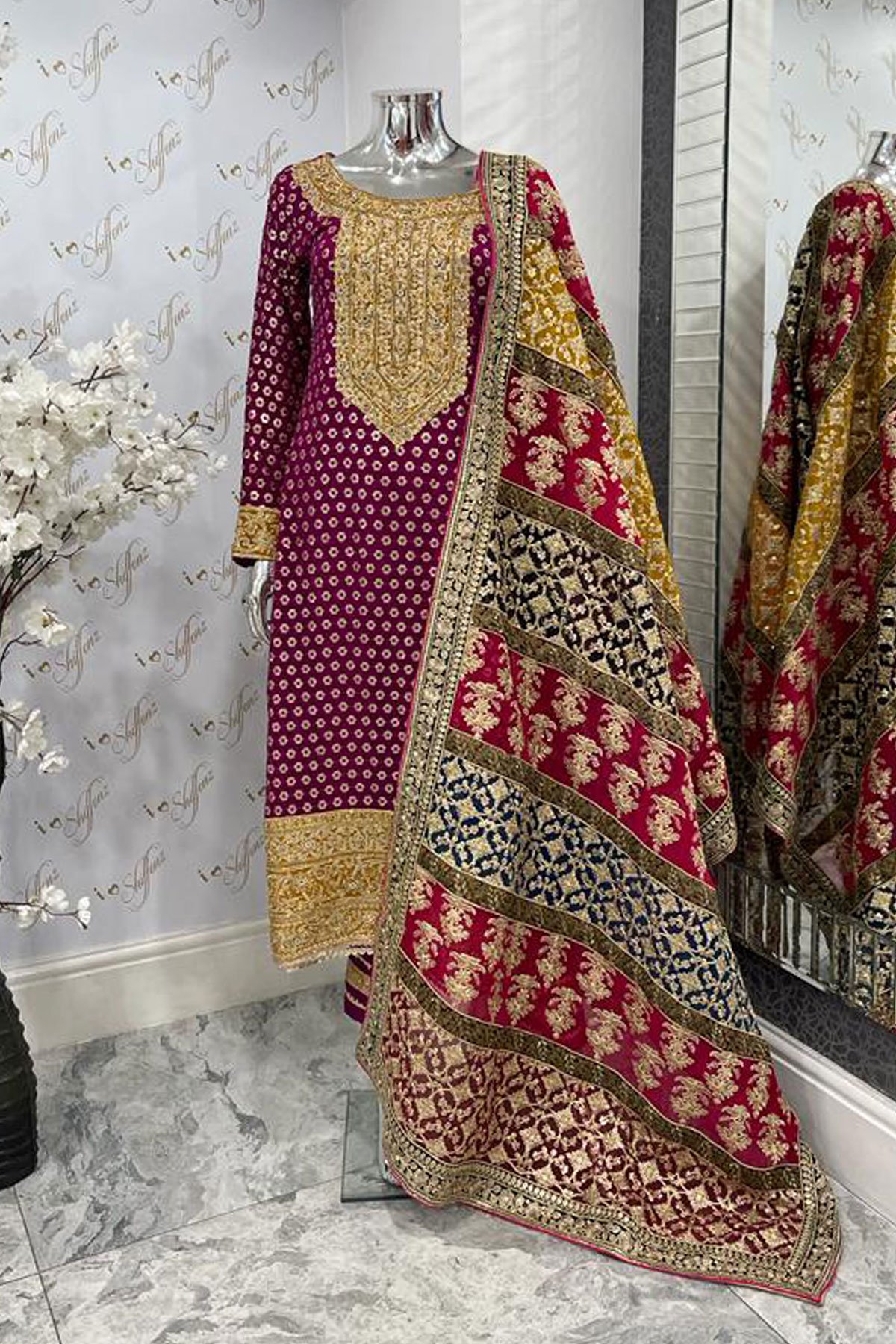 3 Piece mehndi sequence and dori embroidered suit with heavy dupatta