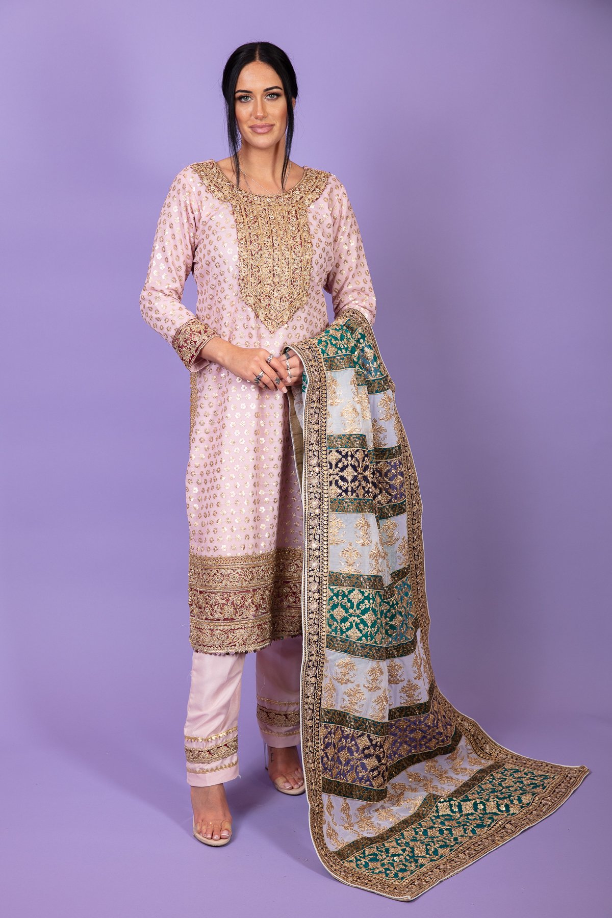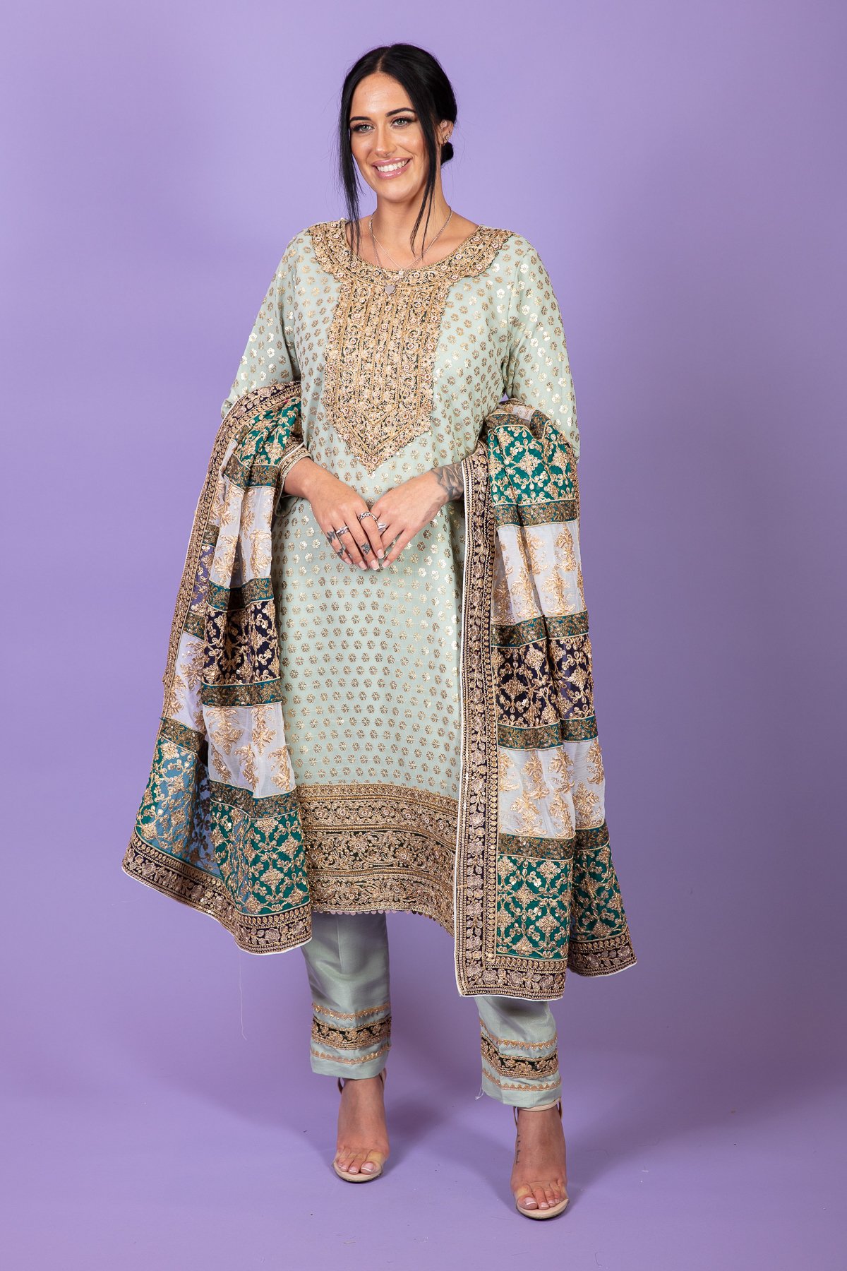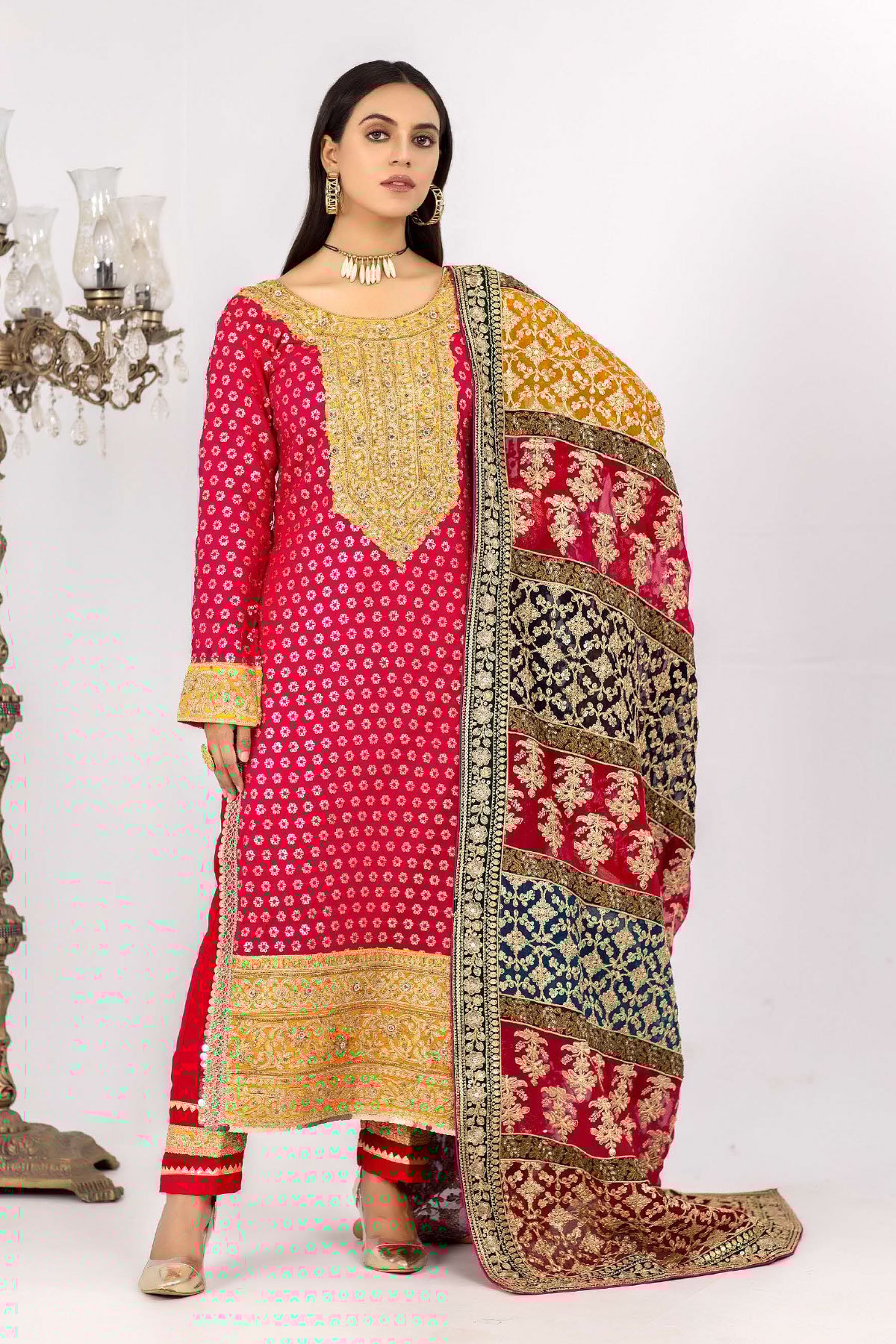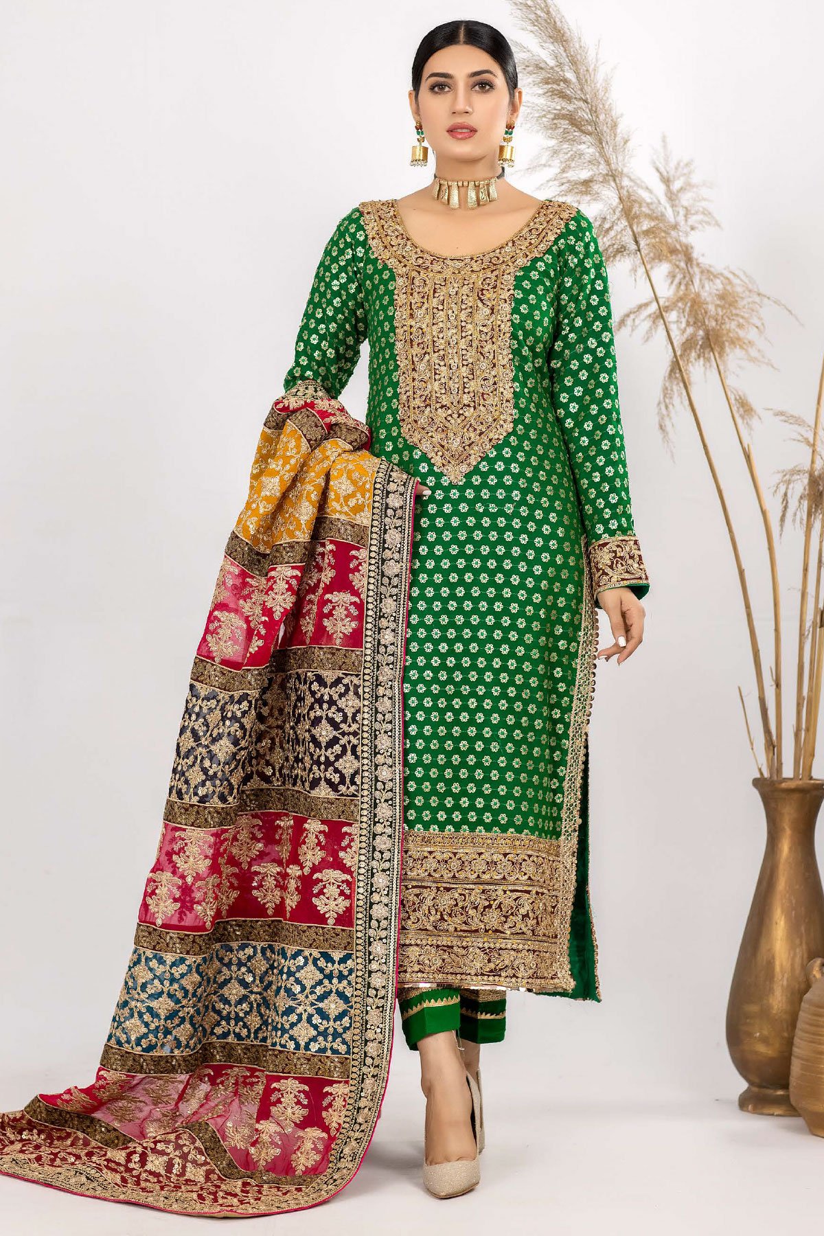 3 Piece mehndi sequence and dori embroidered suit with heavy dupatta
