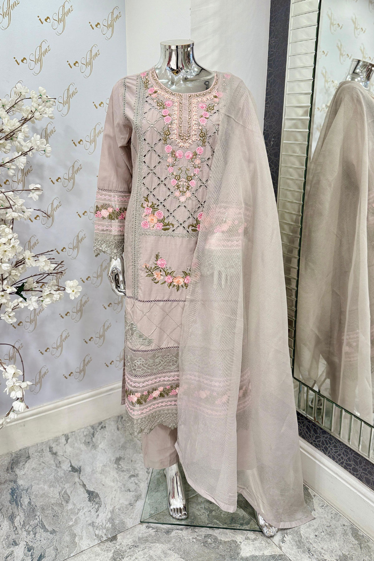 Jannat Floral collection 3 piece embroidered suit