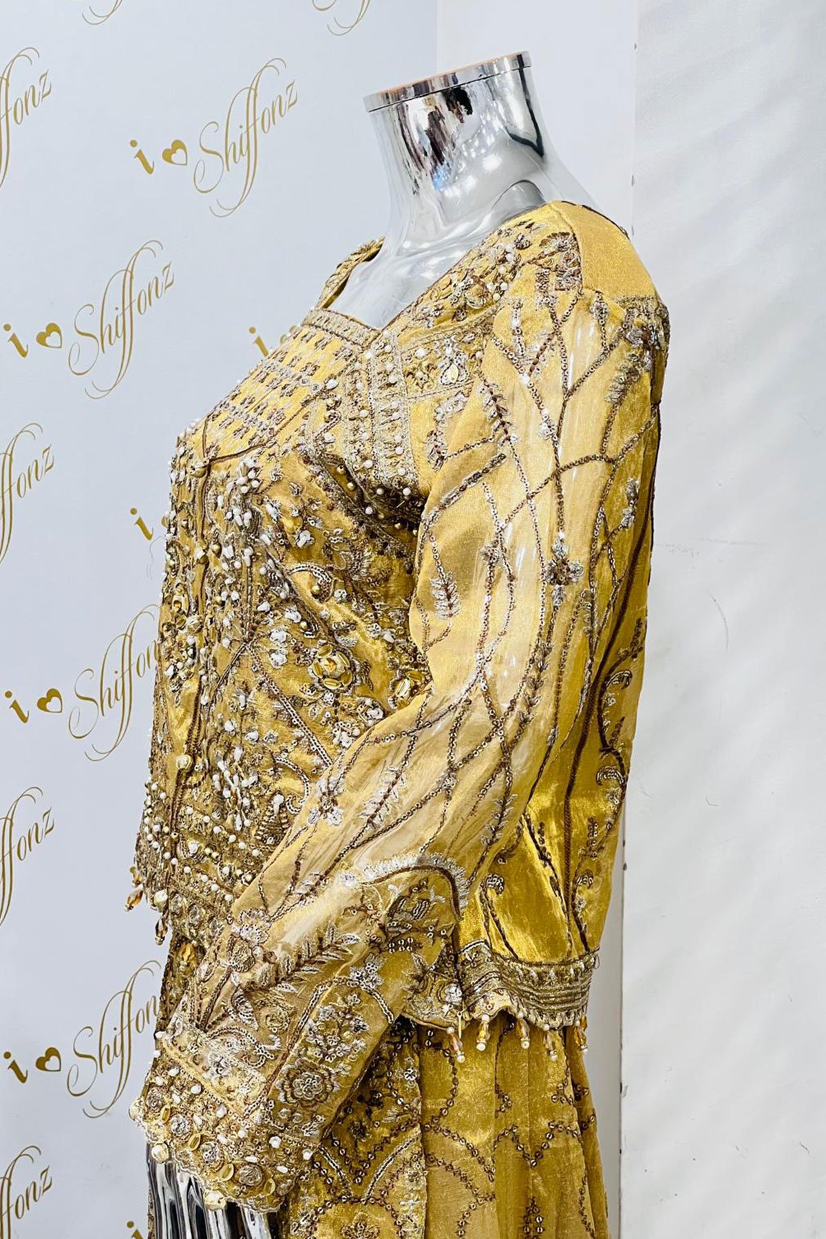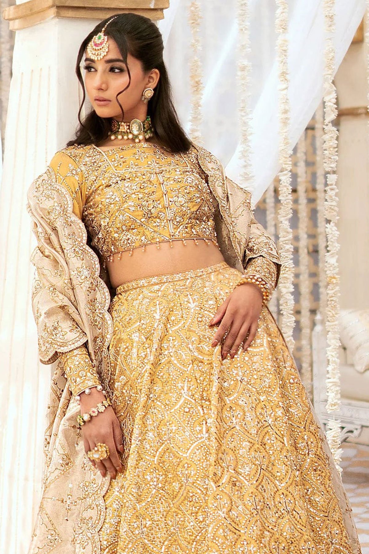 This beautiful Air Atelier lengha choli features a short shirt with luxury thread work embroidery with motif and sequin throughout along with bead embellishments in the middle, finished with full length embroidered sleeves. It comes with a luxury embroidered lengha and the look is finished with an organza contrasted embroidered dupatta.