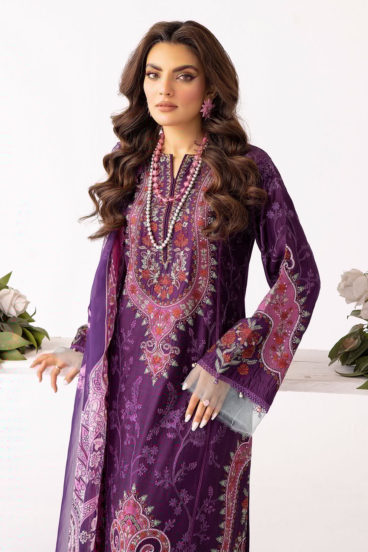This beautiful 3 piece Aleezah collection features a straight suit with luxury thread work embroidery throughout the front, finished with a lace border with bead embellishment. It comes with full length sleeves and straight leg lawn trousers. The look is finished with a chiffon digital printed dupatta. Note: Above catalogue pictures are for design reference only.
