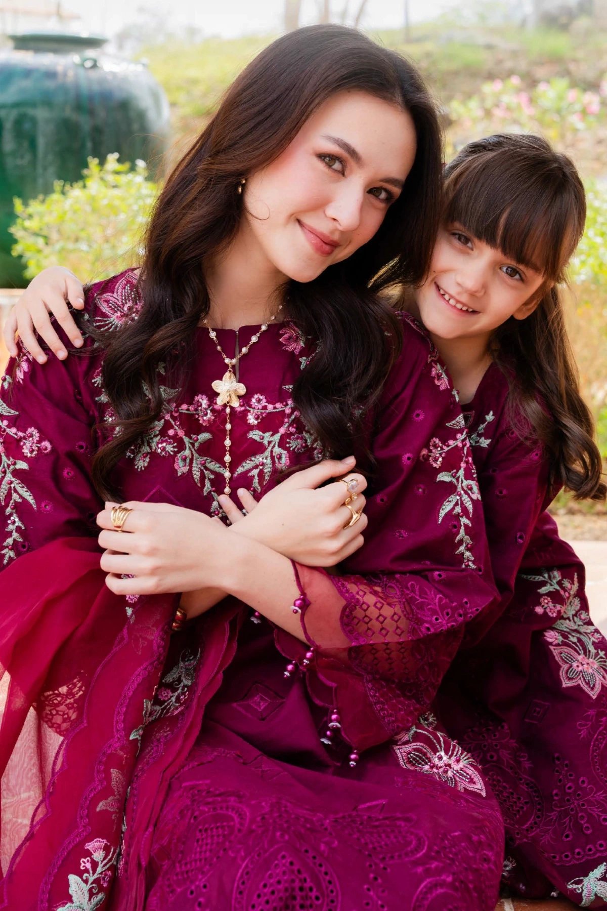 This beautiful 3 piece Aurea kids collection features a straight shirt with luxury thread work embroidered with full length embroidered sleeves. Paired with straight leg trosuers with embroidered border. The look is finished with an embroidered organza dupatta. Perfect mother and daughter collection for this Eid.