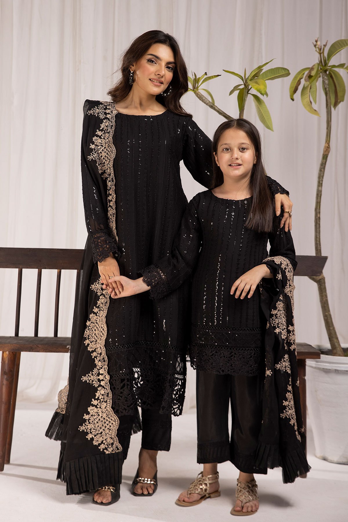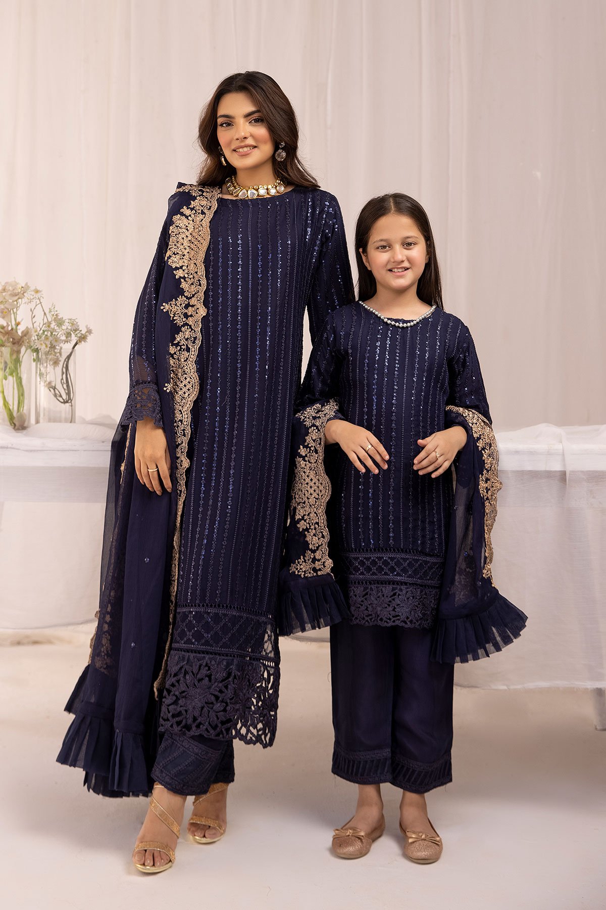 This beautiful 3 piece Azure kids collection suit features a straight chiffon shirt with luxury thread and sequence embroidery throughout the front, finished with lace embellished border. It comes with full length embroidered sleeves and straight leg crepe trousers and the look is finished with a chiffon embroidered dupatta.