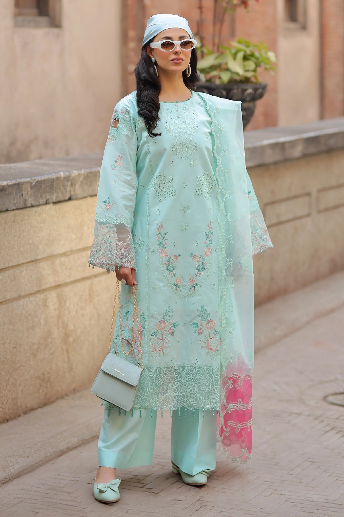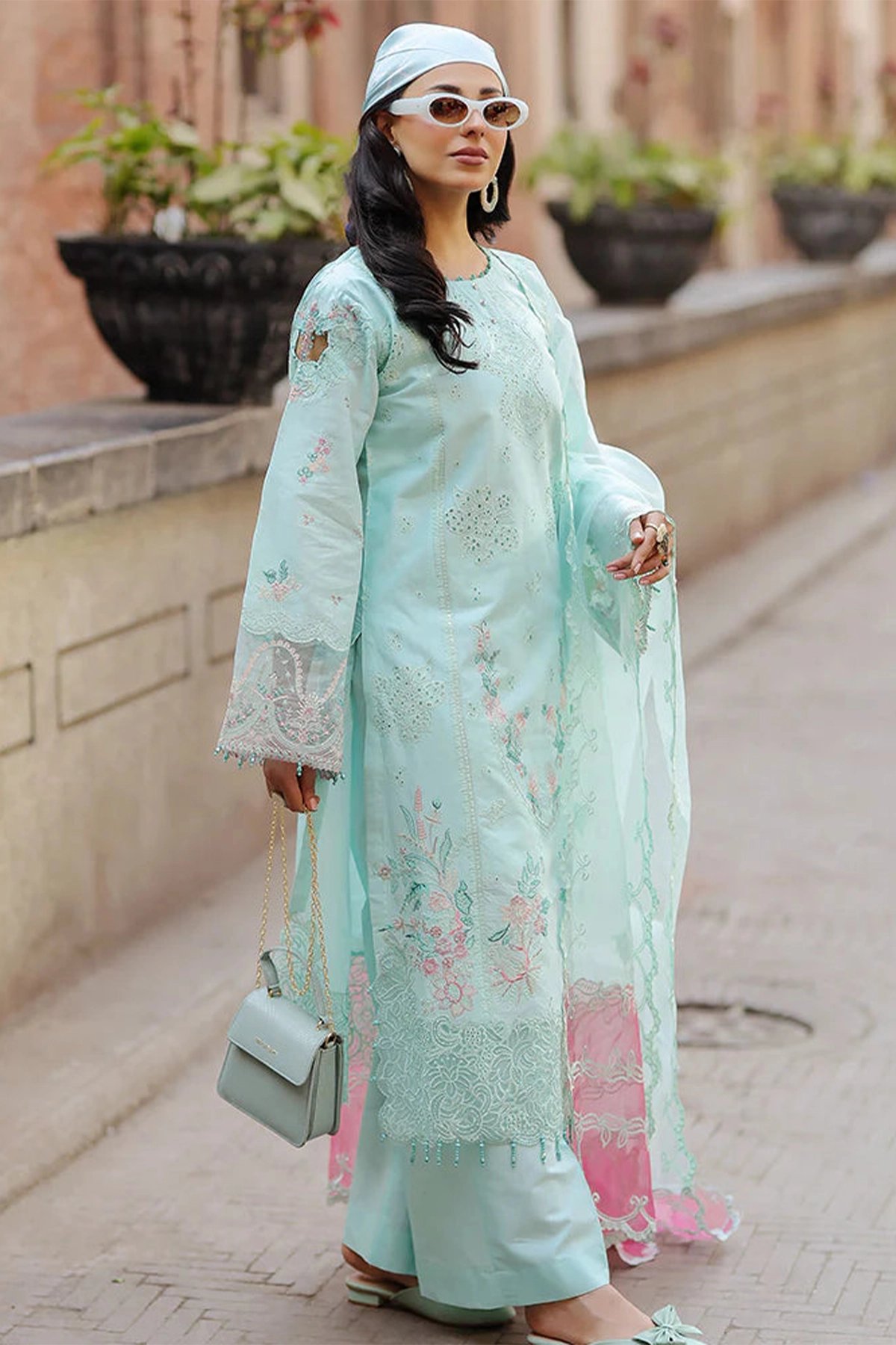 This beautiful Bazar Kahani Eid suit features a chikankari shirt with intricate embroidery, a hand-embellished neckline, and crystal tassels for an elegant touch. It is paired with chikankari straight plazo trousers, adding to its sophisticated appeal. The ensemble is completed with a fully embroidered organza dupatta, making it a perfect choice for Eid or any festive occasion. Please note colour may vary slightly from the images shown due to professional lighting, and the design can slightly vary too.