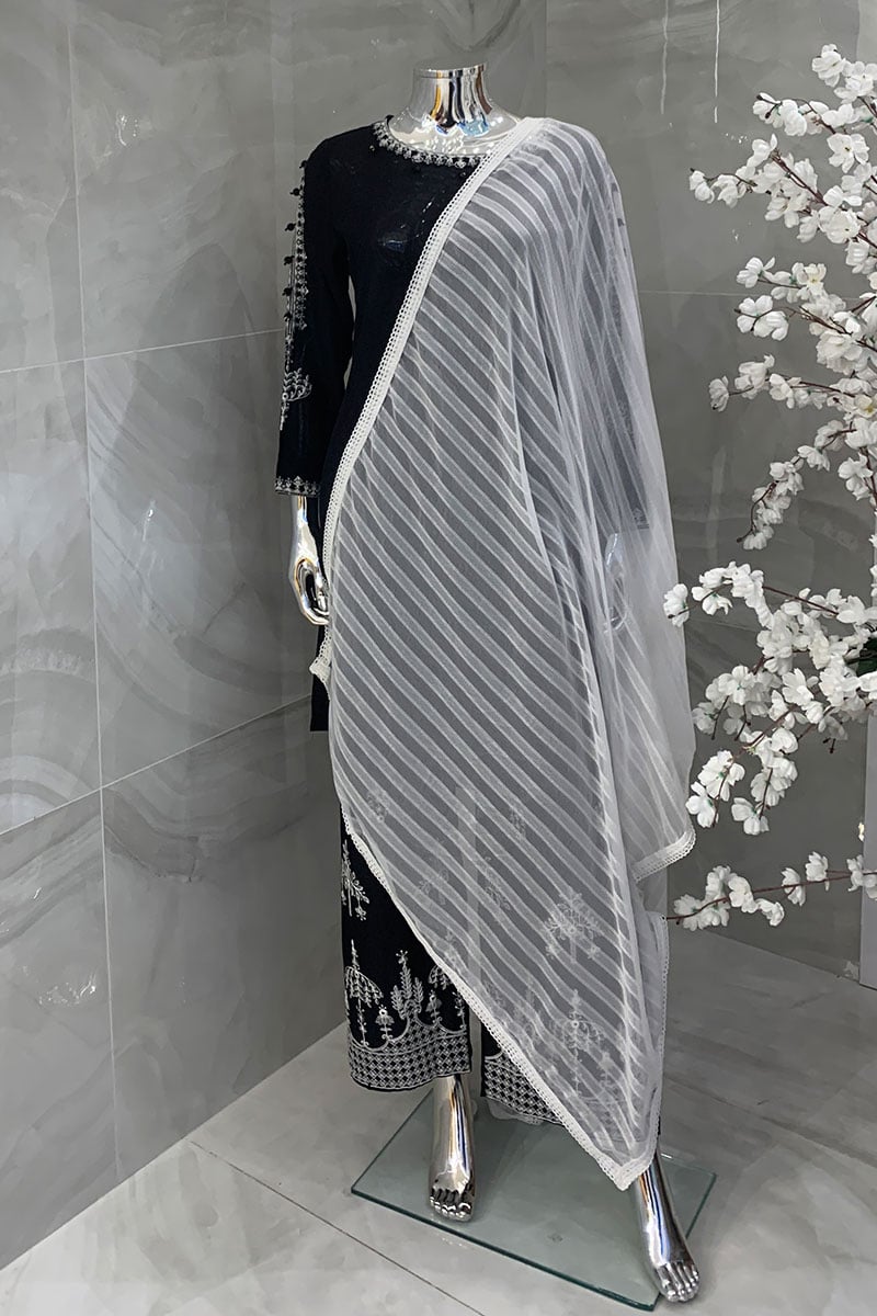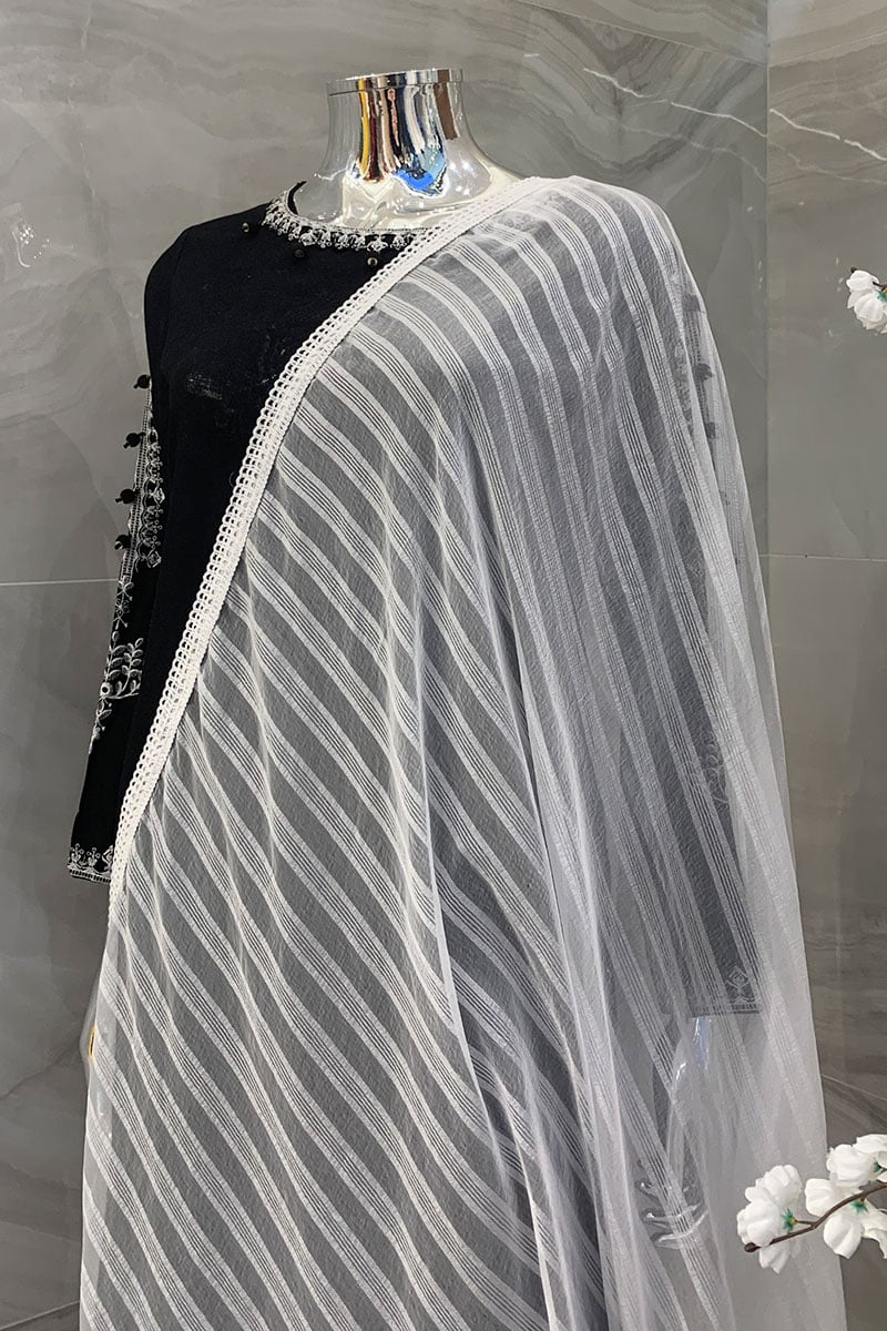 This beautiful casual stripe patterned dupatta finished with lace on the borders.