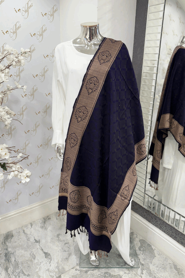 Add a touch of elegance to your winter hues wardrobe with this exquisite piece crafted from lightweight wool material designed to be worn around the shoulders or draped as a shawl or wrap often used in more formal settings or as a decorative piece, Adorned with intricate borders, They’re known for its warmth and versatility, offering a stylish and practical way to add texture and warmth to an outfit.