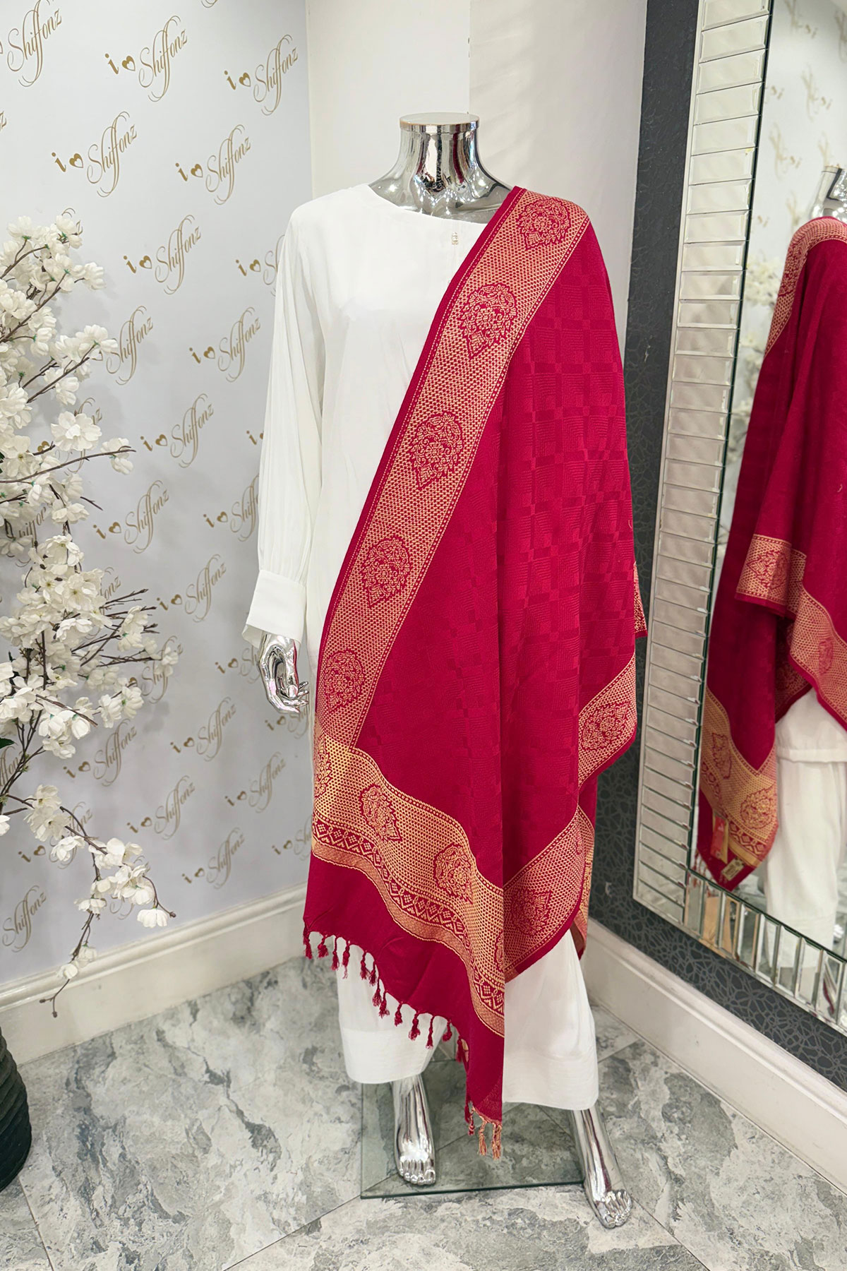 Add a touch of elegance to your winter hues wardrobe with this exquisite piece crafted from lightweight wool material designed to be worn around the shoulders or draped as a shawl or wrap often used in more formal settings or as a decorative piece, Adorned with intricate borders, They’re known for its warmth and versatility, offering a stylish and practical way to add texture and warmth to an outfit.