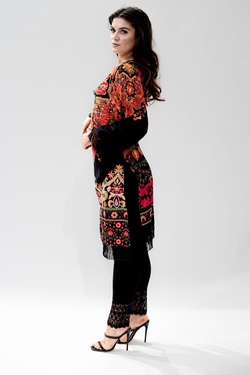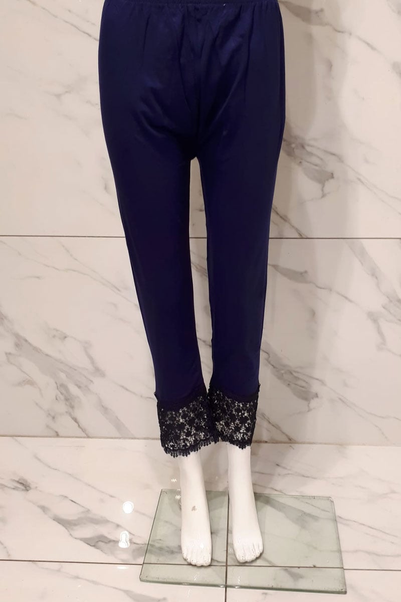 Reimagine every outfit with a pair of comfortable and pretty lace embellished trim stretch leggings.