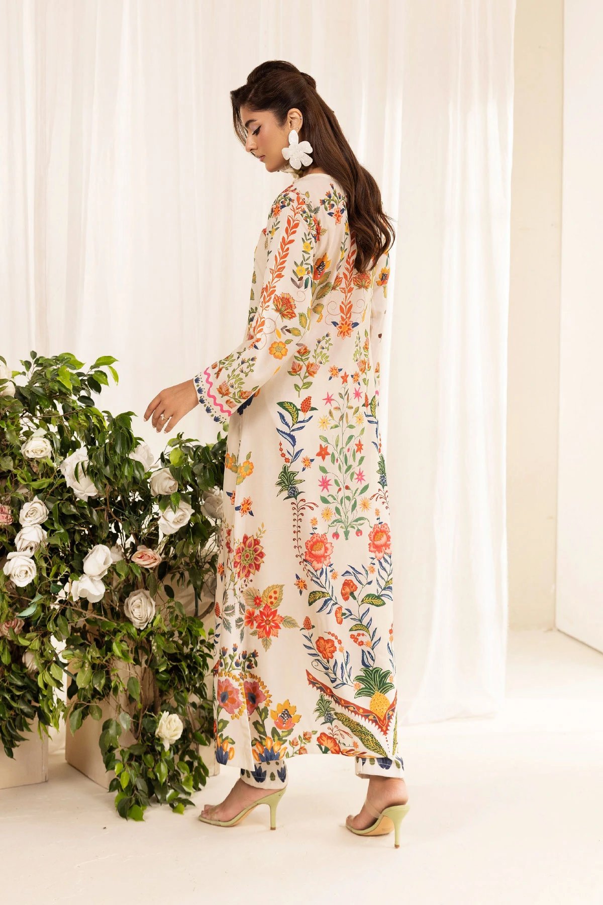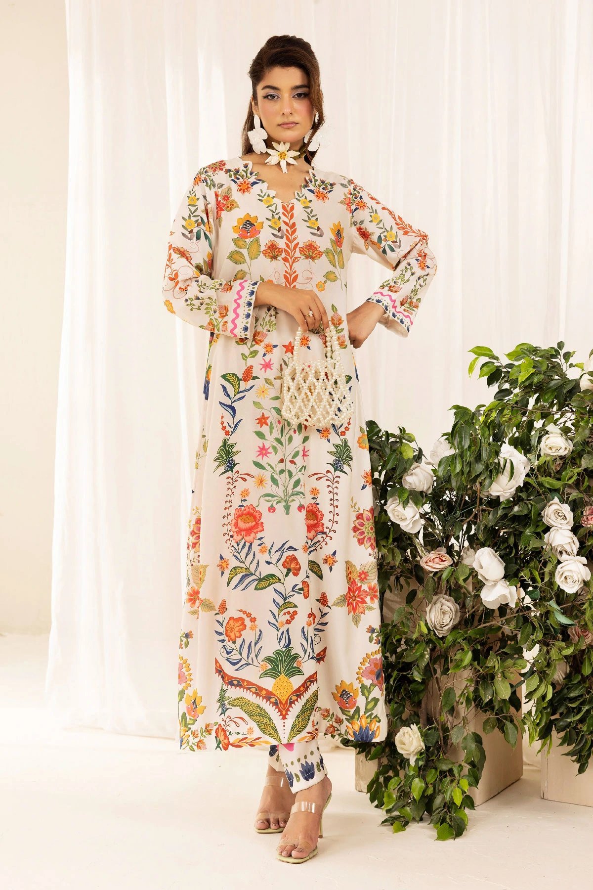 This beautiful 2-piece co-ord set is designed for effortless elegance and comfort. A straight long shirt crafted from poly silk fabric, features a captivating printed design that adds a modern and stylish touch. Paired with matching printed trousers, this ensemble offers a fluid and relaxed silhouette, perfect for both casual and semi-formal occasions. A versatile addition to your wardrobe, ideal for all-day wear with a chic and contemporary appeal.