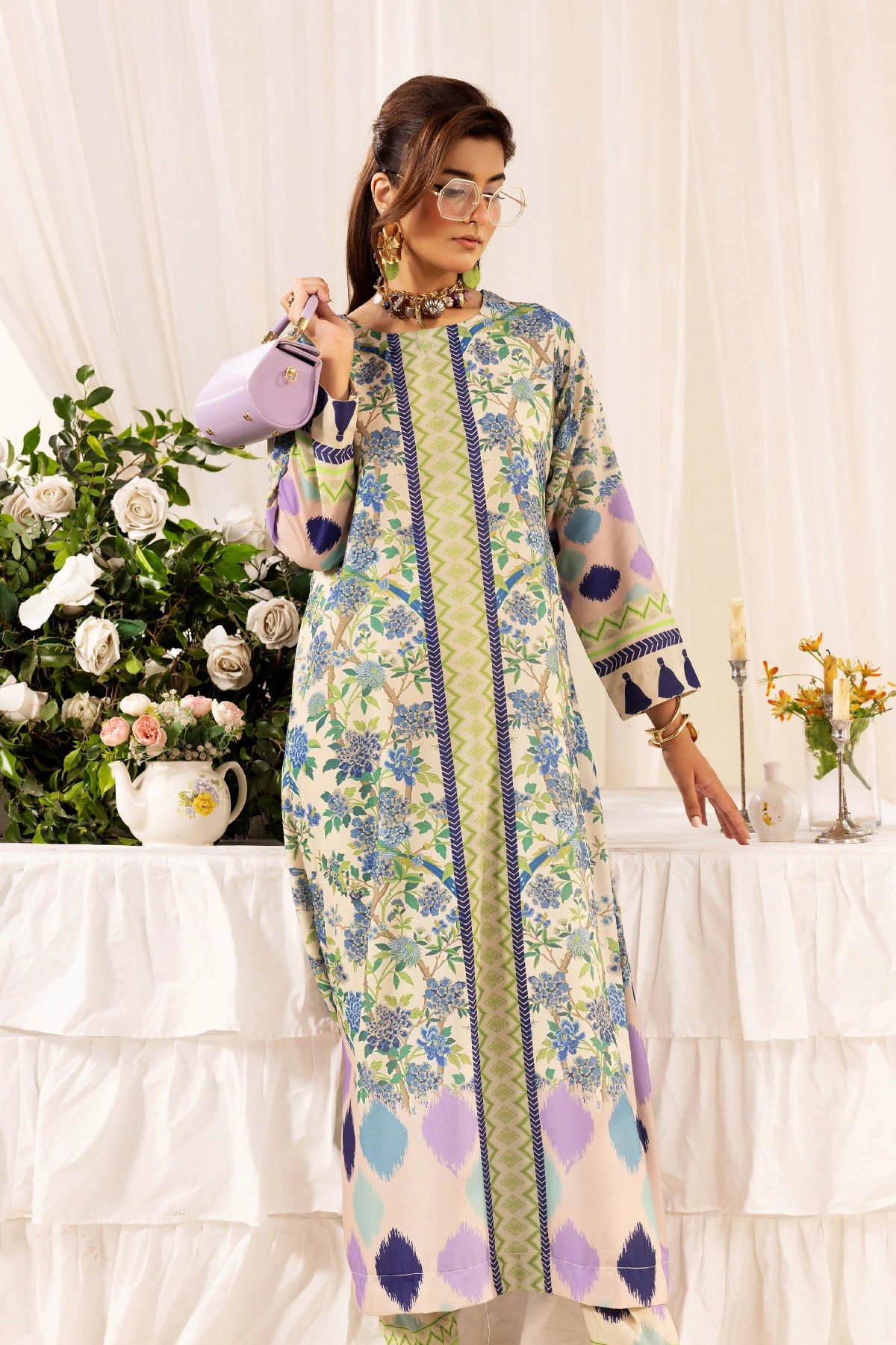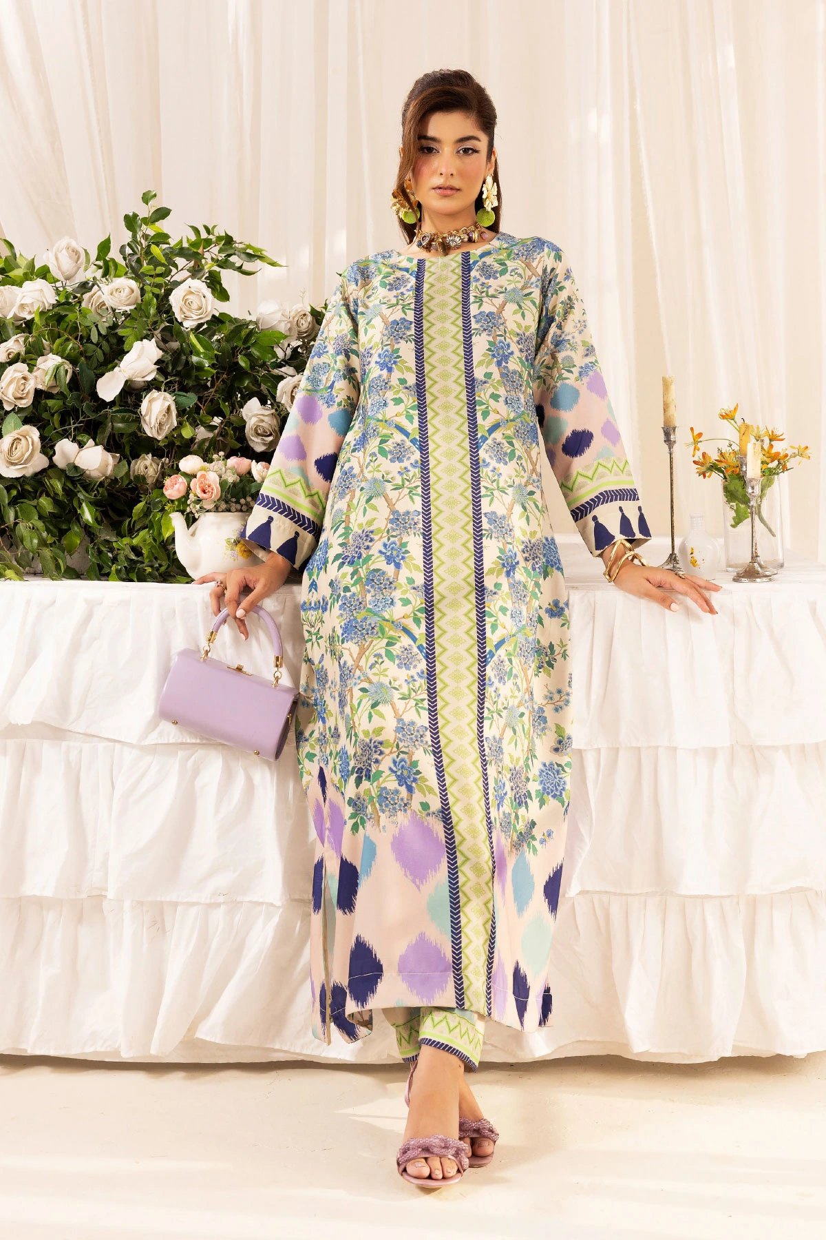 This beautiful 2-piece co-ord set is designed for effortless elegance and comfort. A straight long shirt crafted from poly silk fabric, features a captivating printed design that adds a modern and stylish touch. Paired with matching printed trousers, this ensemble offers a fluid and relaxed silhouette, perfect for both casual and semi-formal occasions. A versatile addition to your wardrobe, ideal for all-day wear with a chic and contemporary appeal.