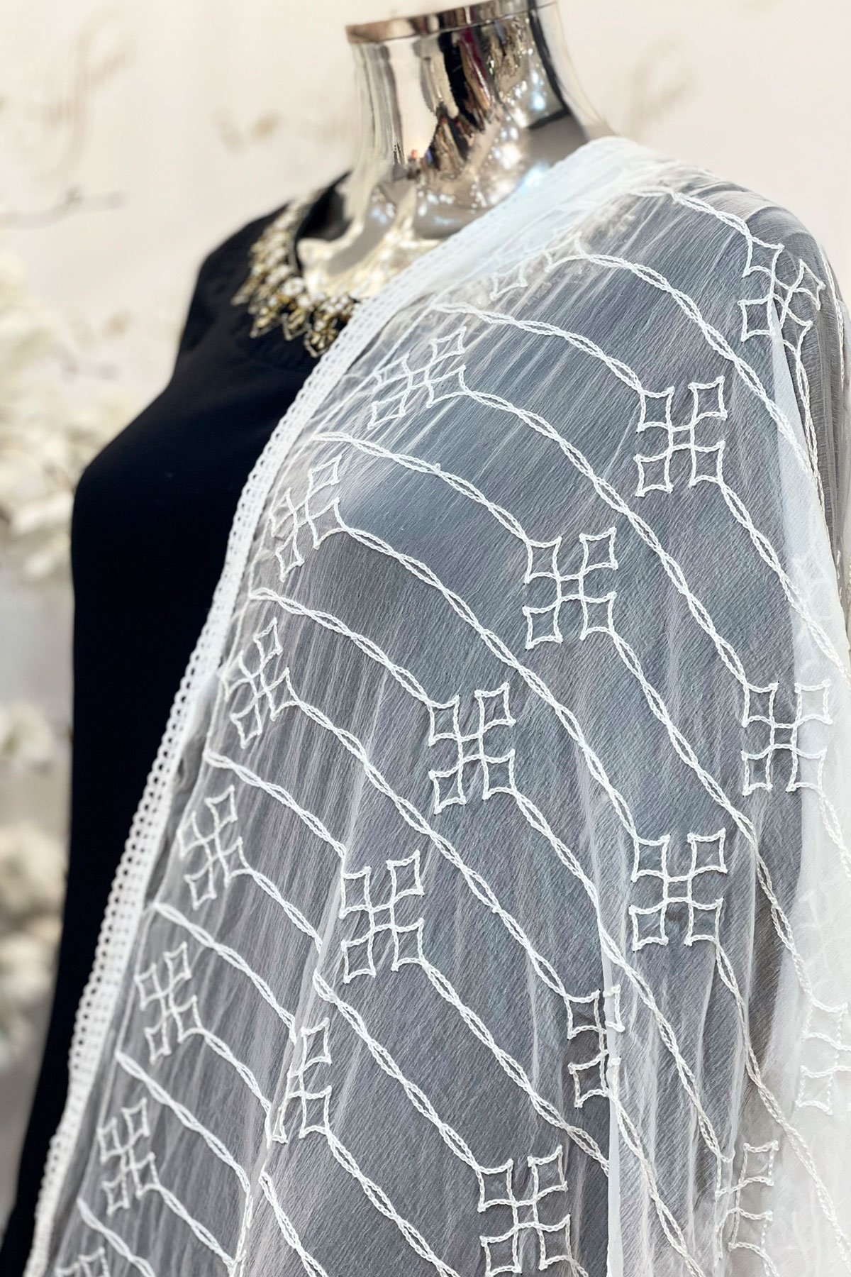 Shiffonz silver sequenced net dupatta