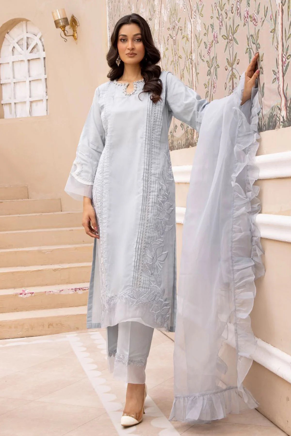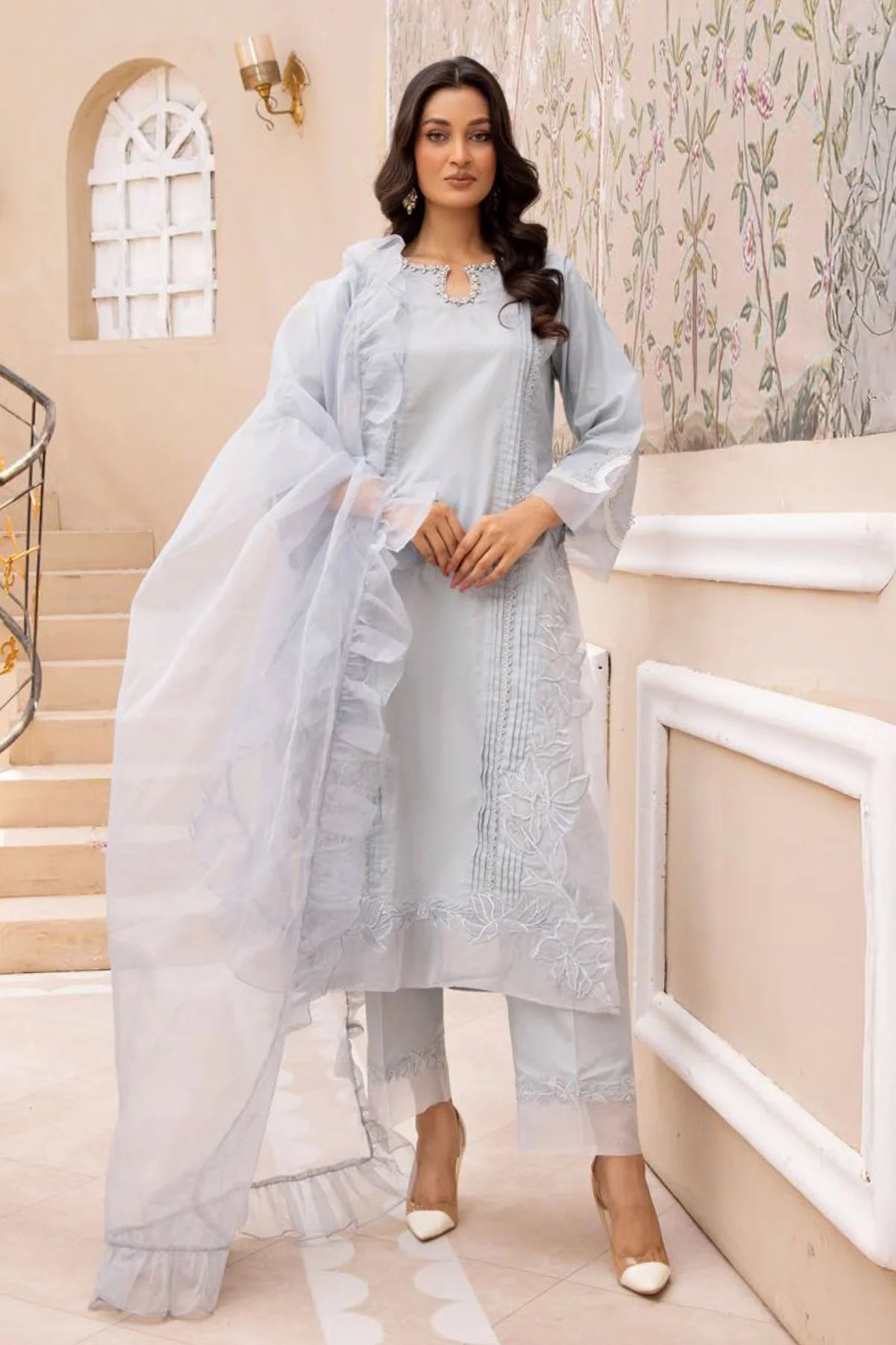 Neelam collection 3 piece suit with embroidered shawl