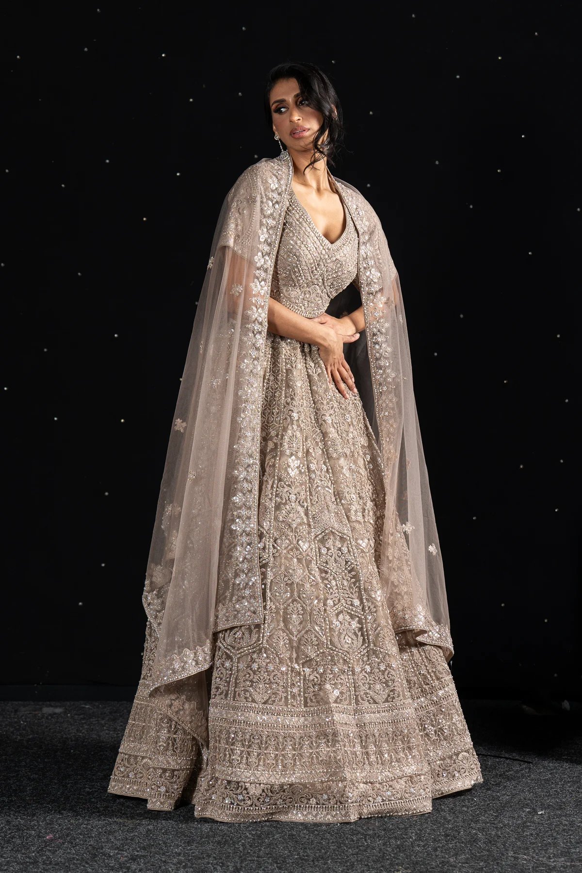 This beautiful 3-piece lehnga choli is crafted from premium net fabric, featuring exquisite threadwork and sparkling sequins. The net lehnga is adorned with intricate detailing, complementing the elegant net choli with its delicate embellishments. The net dupatta completes the look, adding a touch of timeless grace and luxury. Perfect for making a statement at any special occasion.