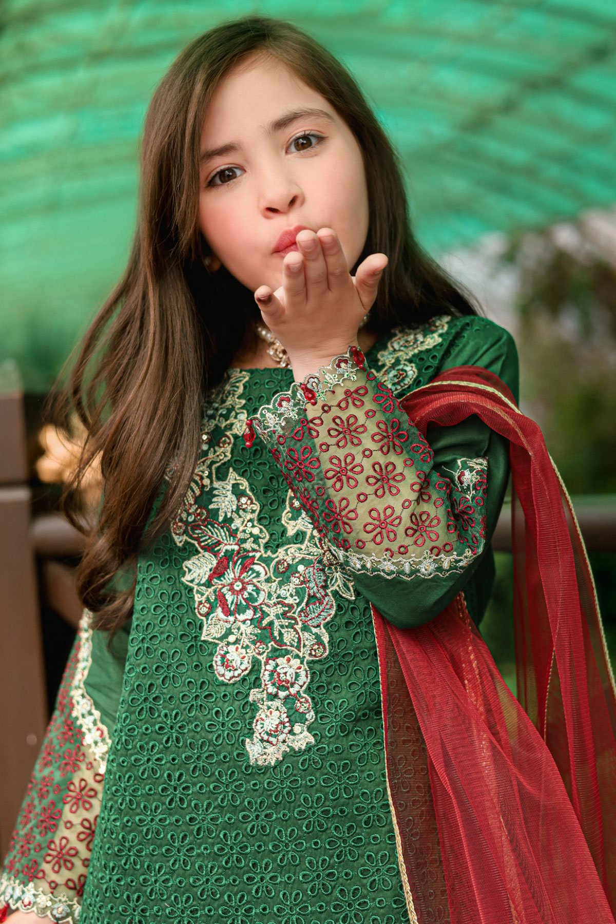 Eid festive chikankari kids 3 piece mother and daughter collection