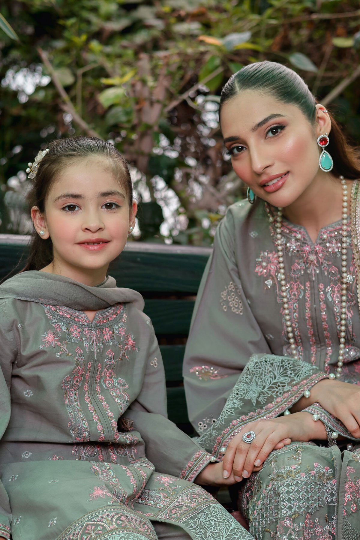 Eid festive chikankari kids 3 piece mother and daughter collection