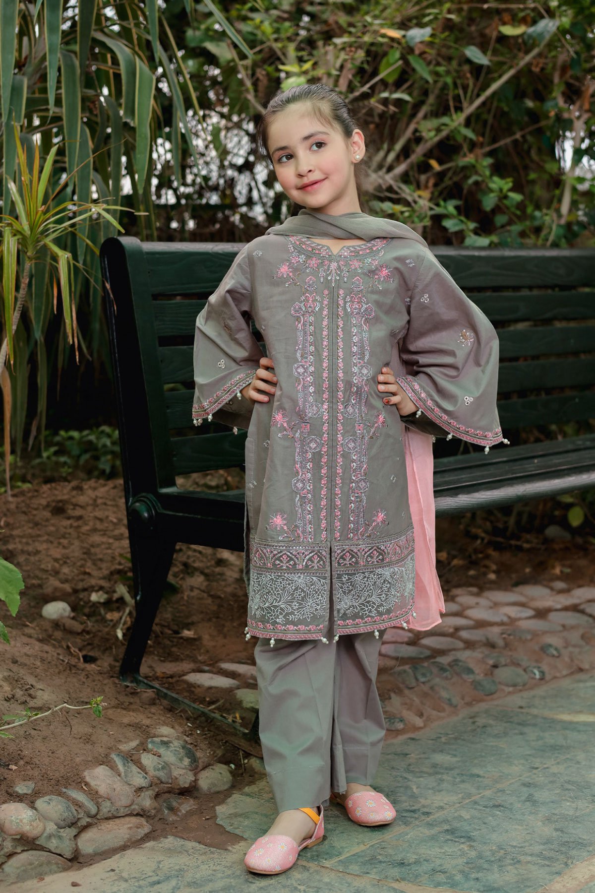 This beautiful 3 piece kids chikankari collection features a straight embroidered shirt, finished with an organza embroidered border with dangling beads. It comes with full length embroidered sleeves and straight leg trousers. The look is finished with a chiffon tie dye dupatta. Perfect mother and daughter collection for this Eid. Note; Above catalogue designs are for design reference only.