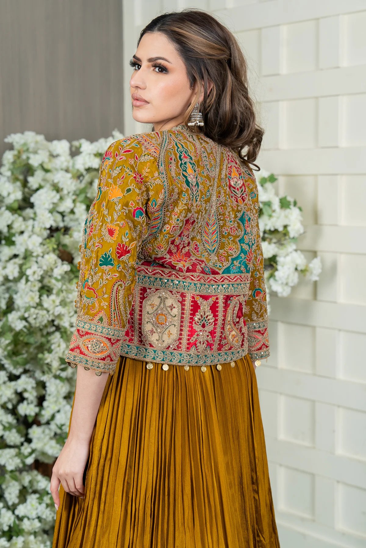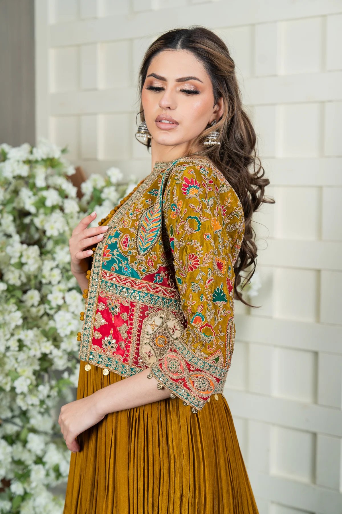 This beautiful 2-piece Anarkali gown features a flowing crepe Anarkali paired with a short jacket for a sophisticated layered look. The jacket and gown is crafted from crepe and adorned with intricate heavy thread work, adding an elegant touch to the ensemble. Perfect for special occasions, this outfit blends grace with timeless charm.