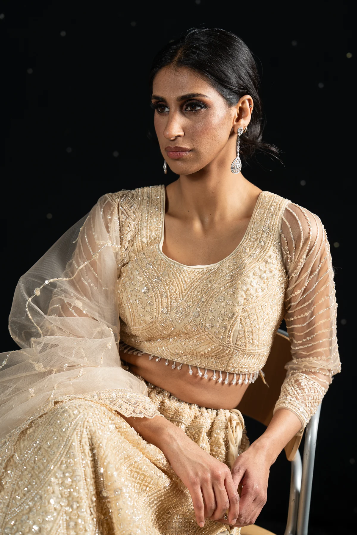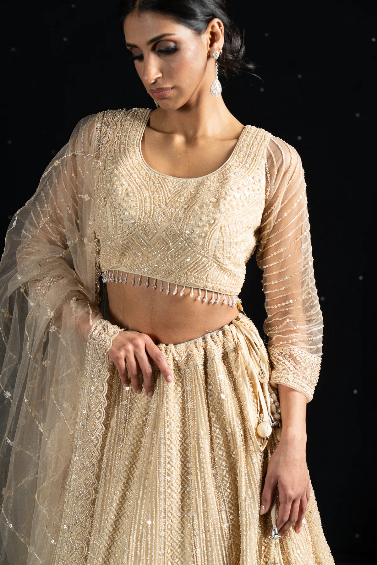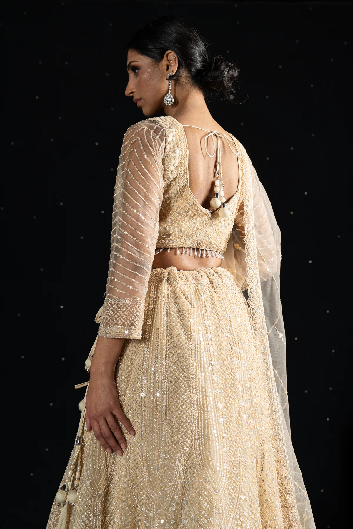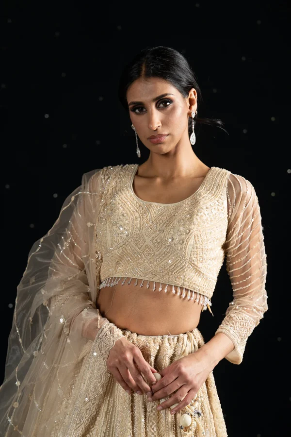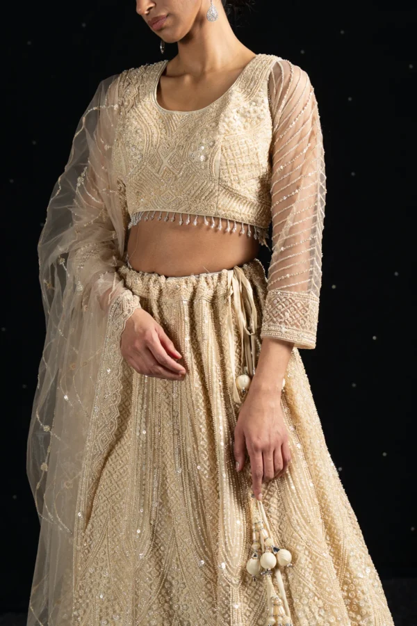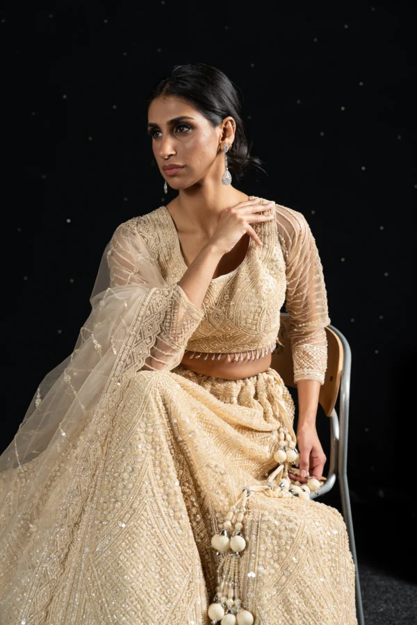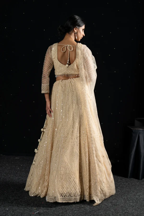 This beautiful 3-piece lehnga choli is crafted from premium net fabric, featuring exquisite threadwork and sparkling sequins. The net lehnga is adorned with intricate detailing, complementing the elegant net choli with its delicate embellishments. The net dupatta completes the look, adding a touch of timeless grace and luxury. Perfect for making a statement at any special occasion.