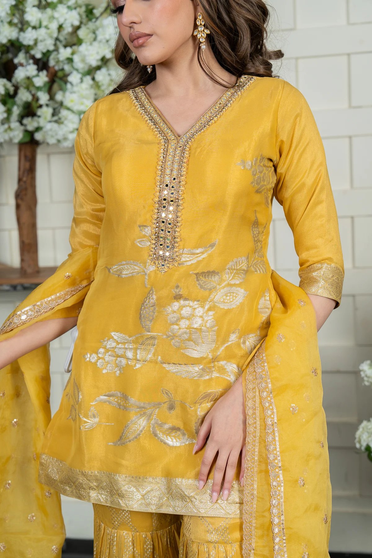 Elegant raw silk 3 piece gharara suit