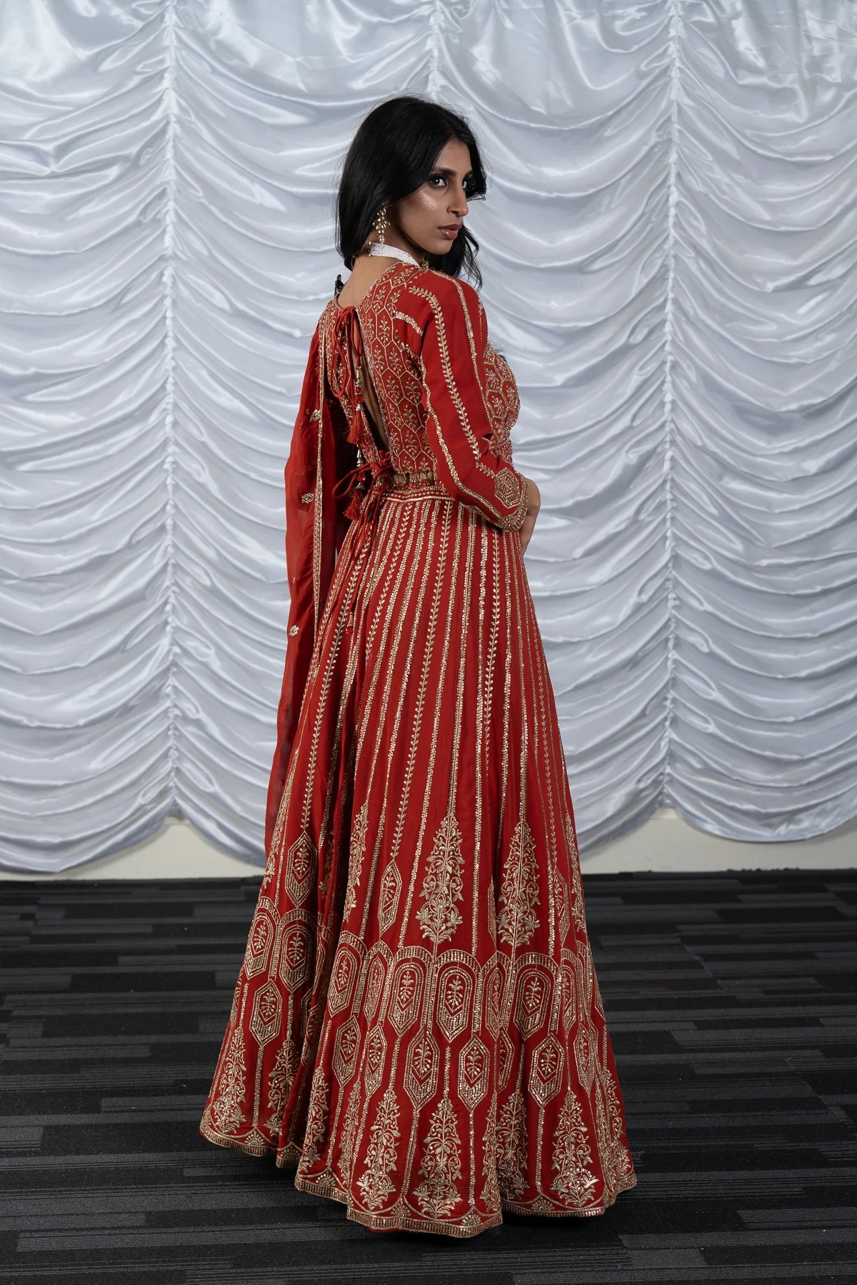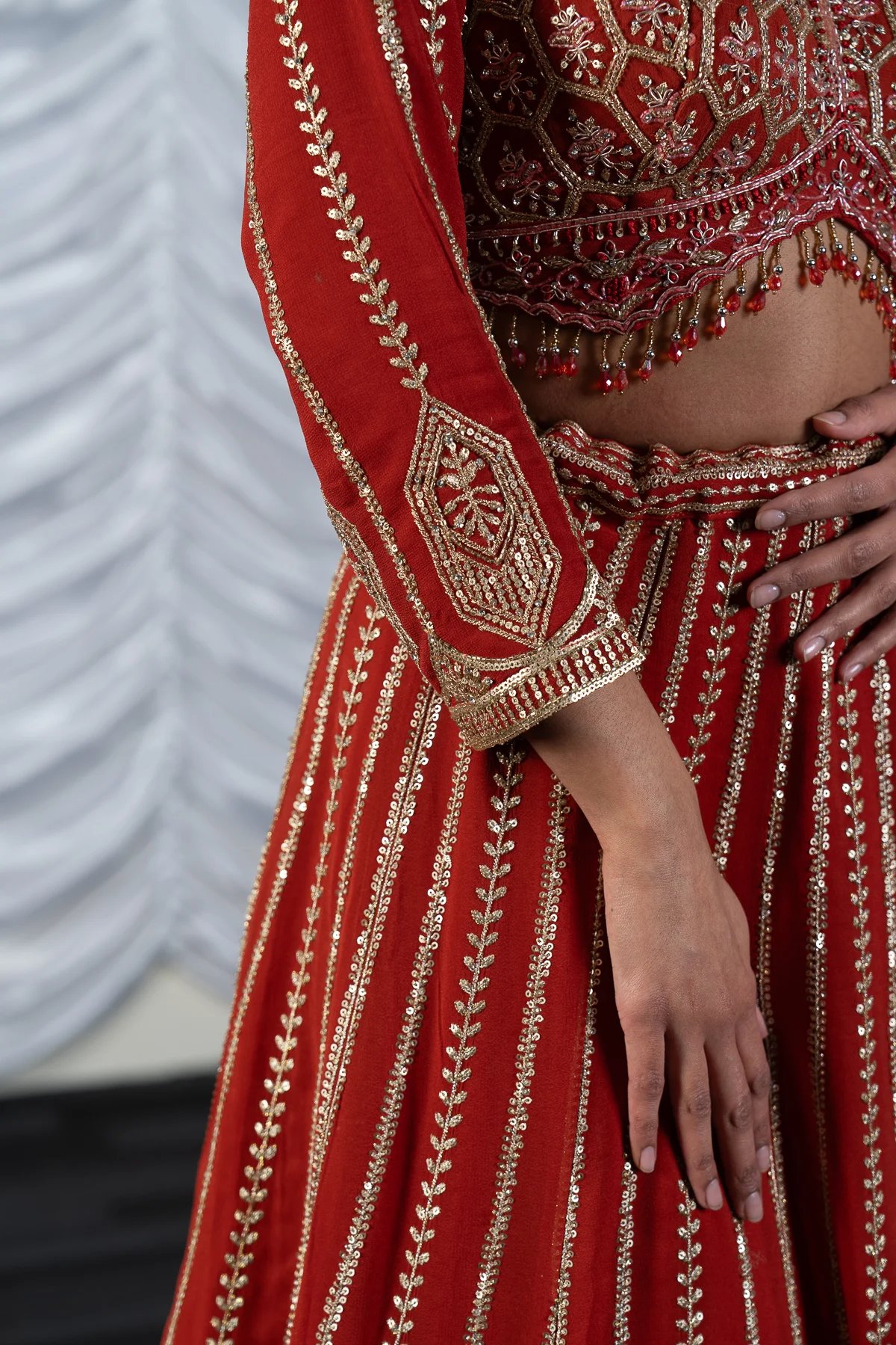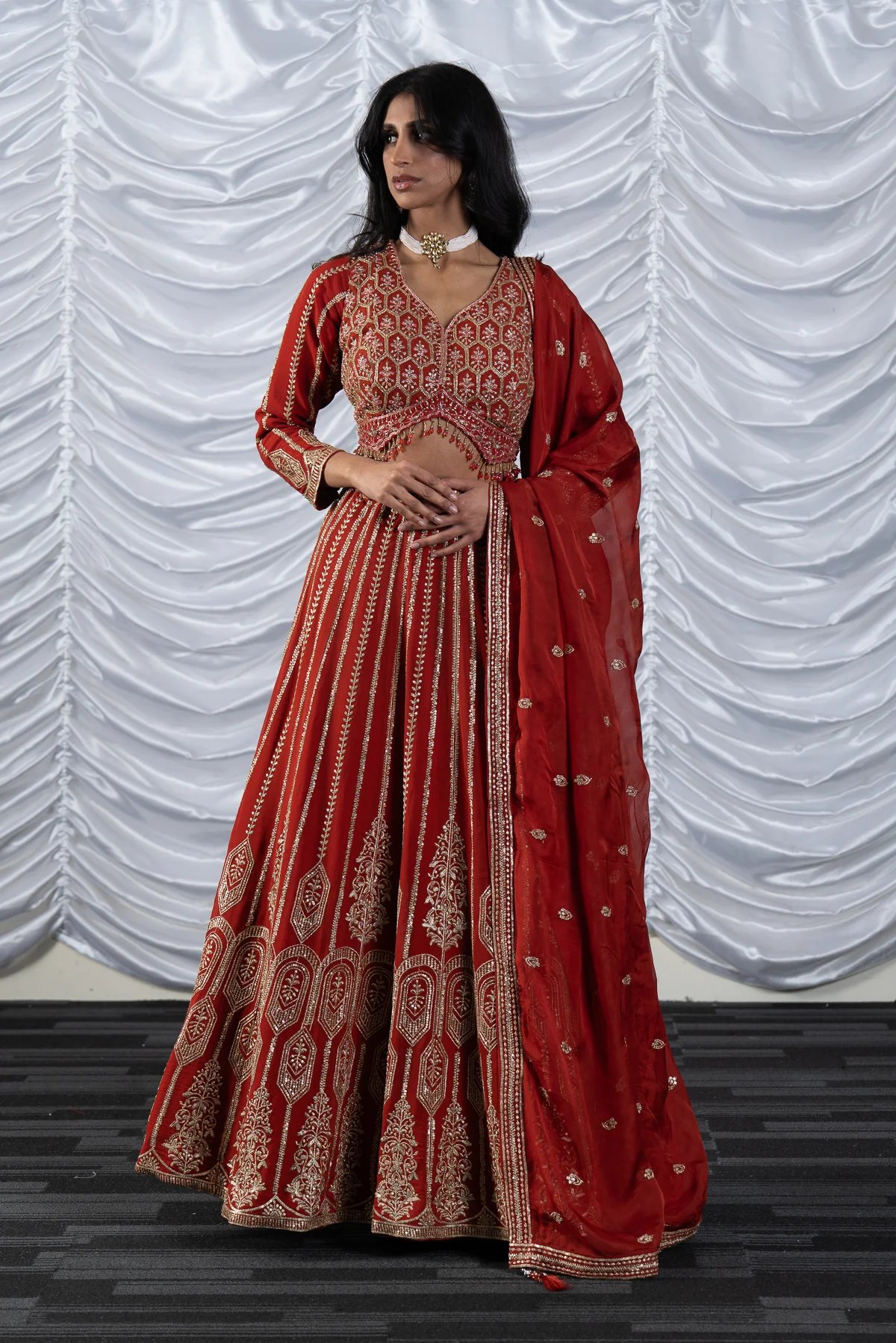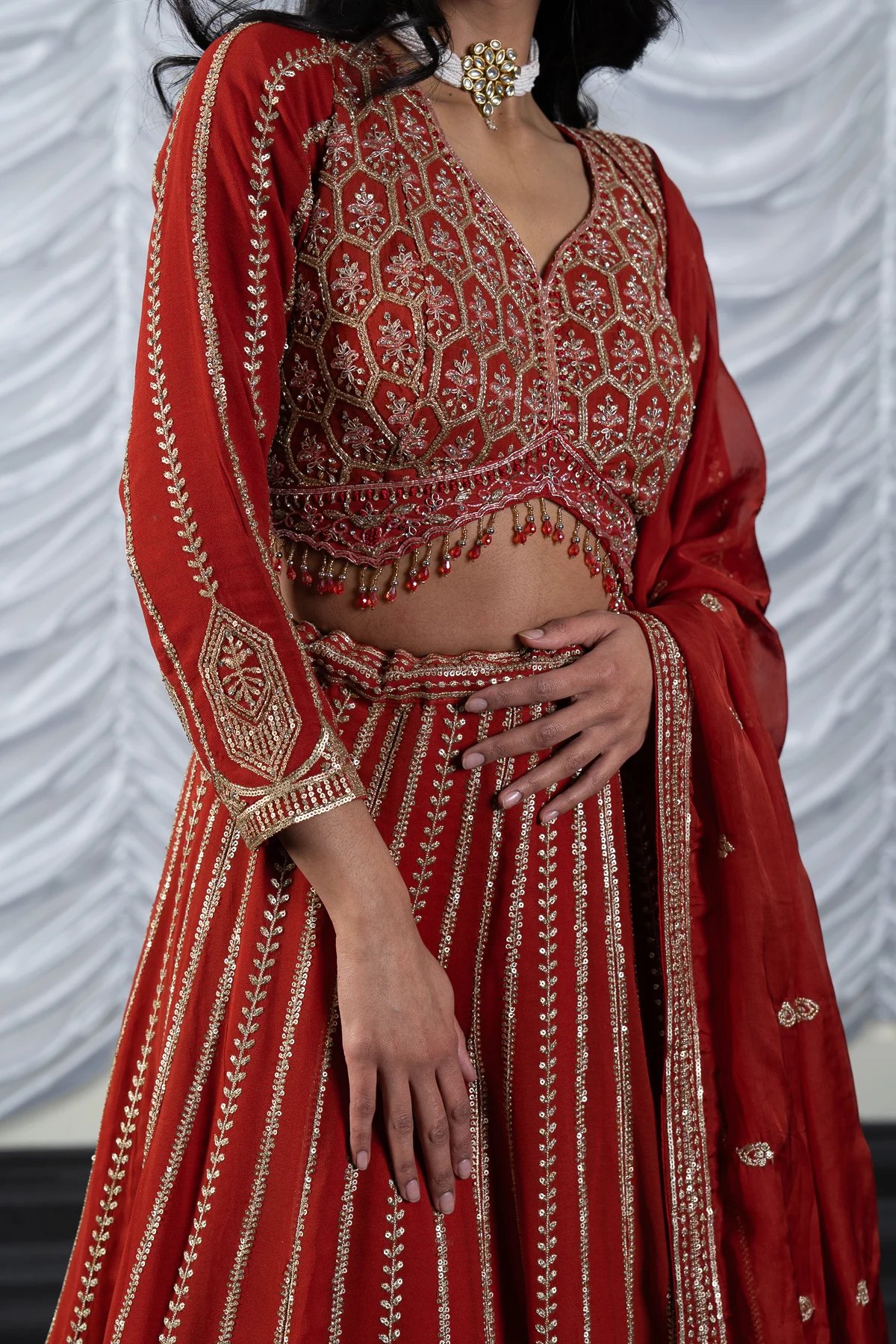 This beautiful 3 piece lengha choli features an elegant combination of intricate threadwork and premium georgette fabric, making it a timeless choice for any special occasion. The choli showcases exquisite embroidery with a flattering design that adds a touch of elegance to the ensemble. The lehenga is adorned with delicate embroidered patterns that cascade down its flare, exuding grace and charm. Completing the look is a soft georgette dupatta, accented with subtle embroidery and finished with elegant tassels along the edges.