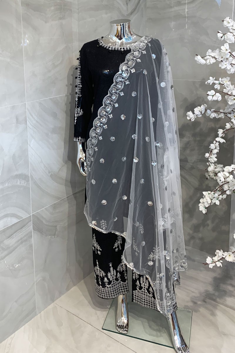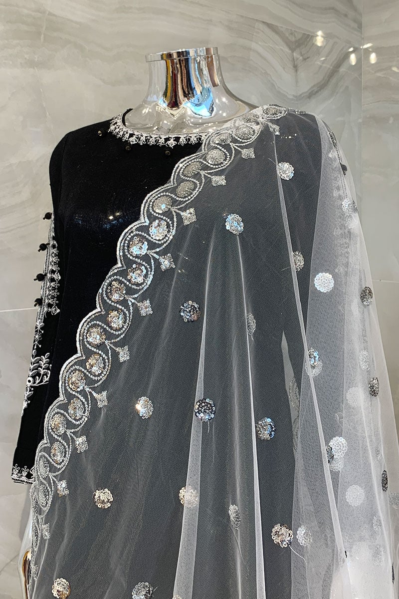 This beautiful casual dupatta features sequence embellishment throughout the front on the net overlay.