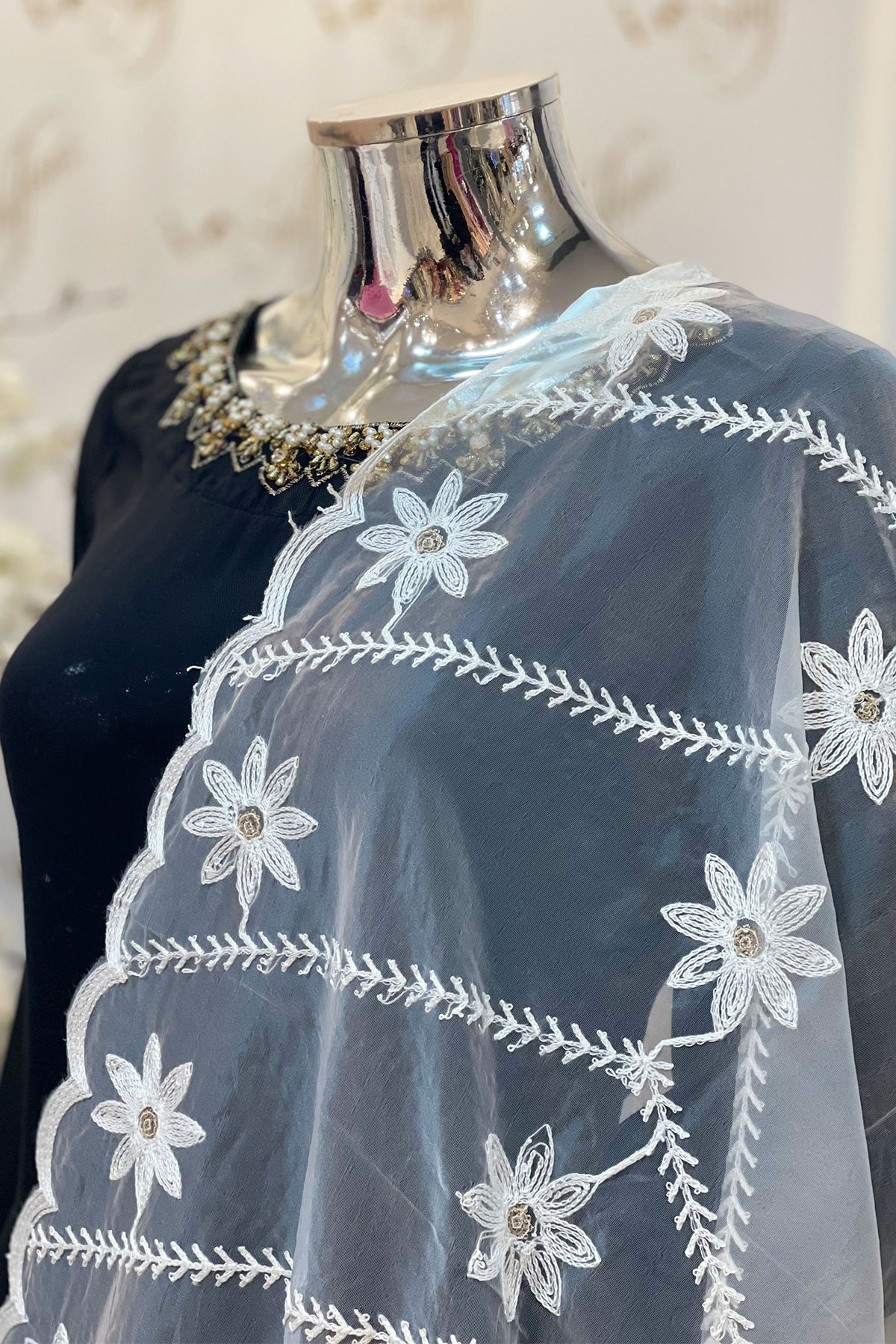 Floral embroidered dupatta