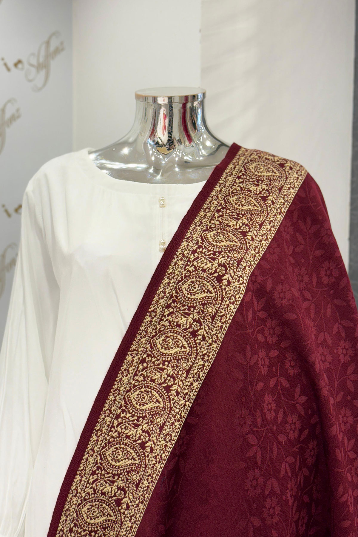Add a touch of elegance to your winter hues wardrobe with this exquisite piece crafted from lightweight wool material designed to be worn around the shoulders or draped as a shawl or wrap often used in more formal settings or as a decorative piece, Adorned with intricate borders, They’re known for its warmth and versatility, offering a stylish and practical way to add texture and warmth to an outfit.