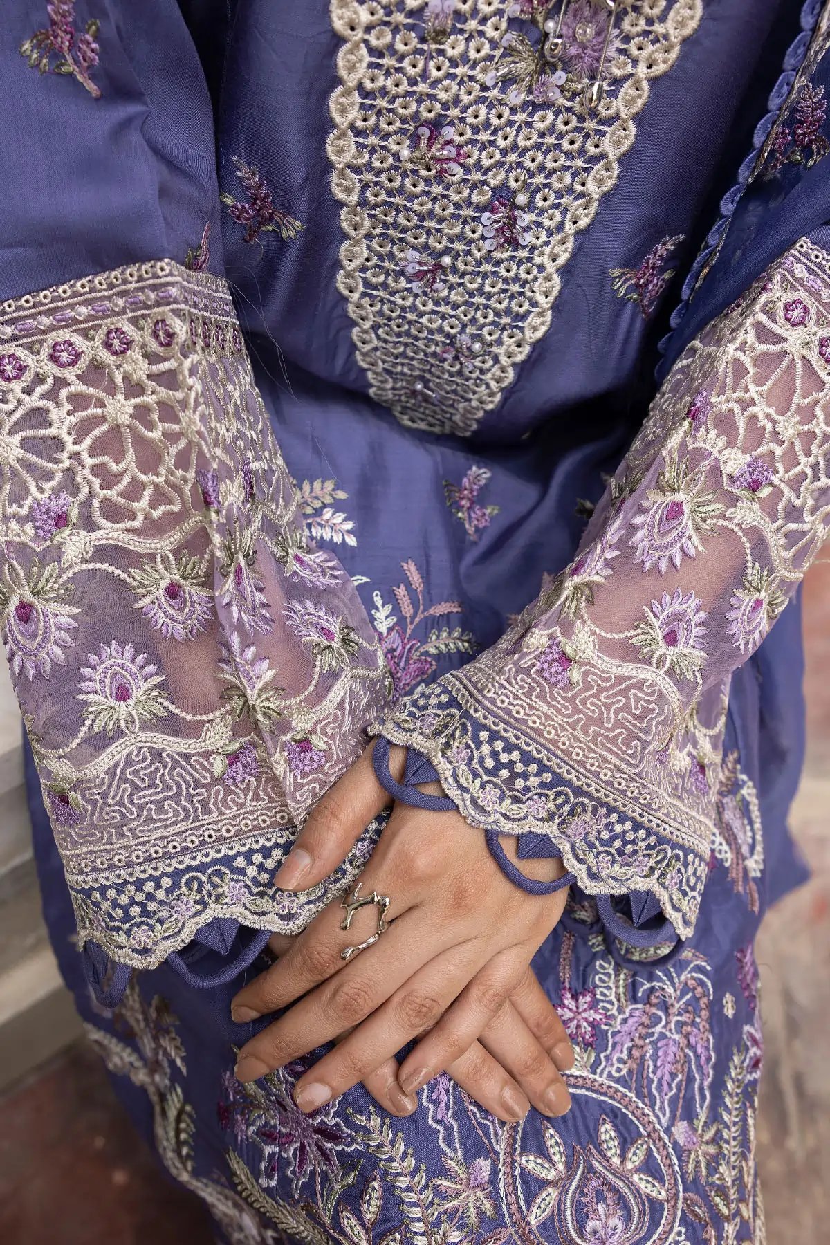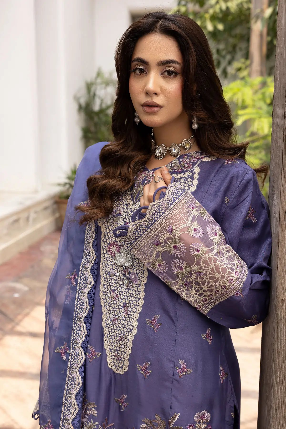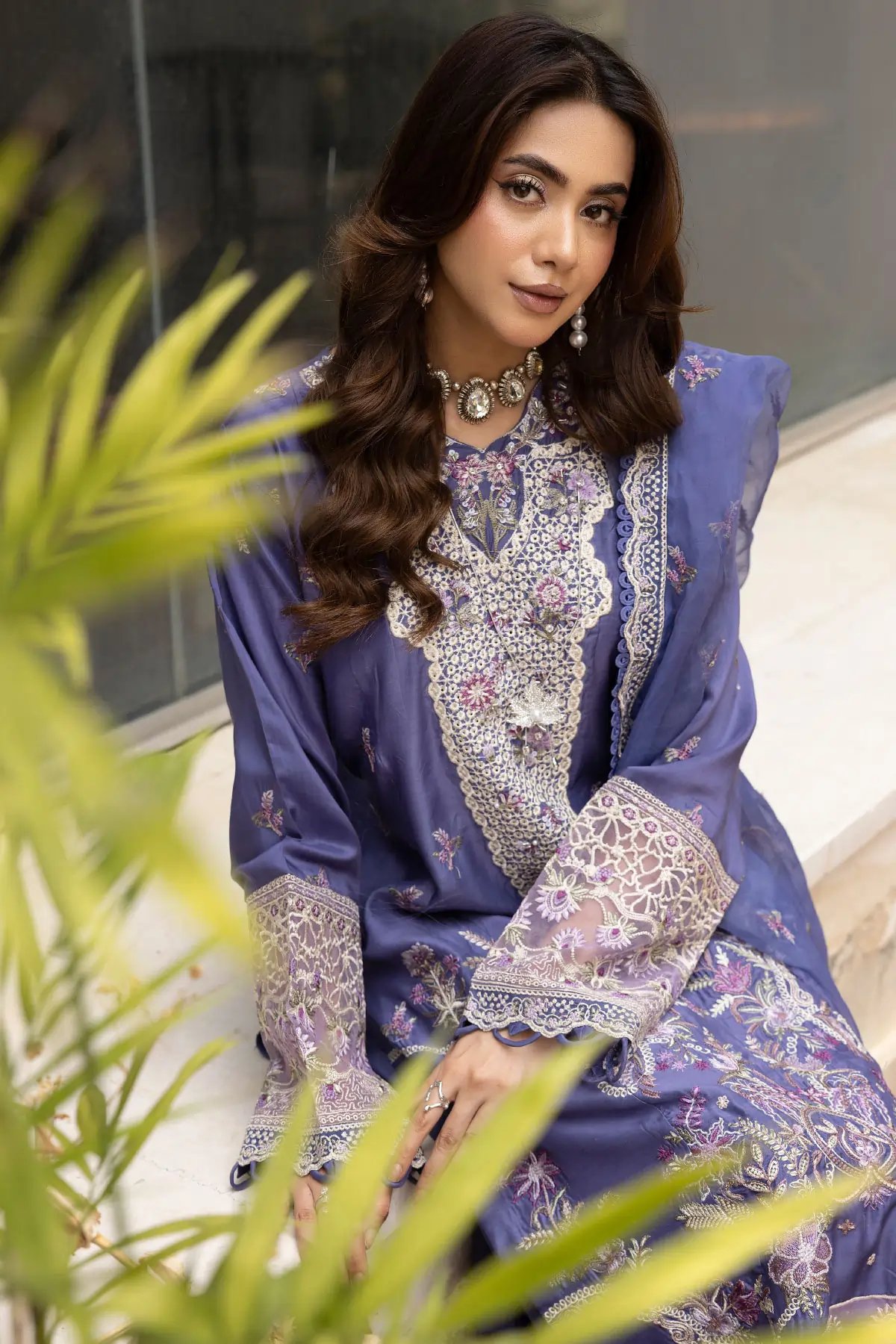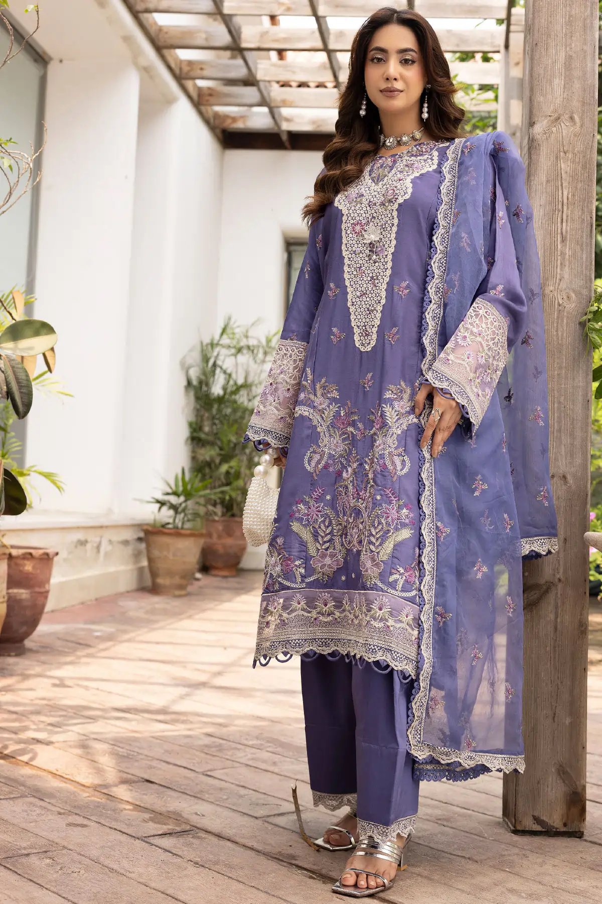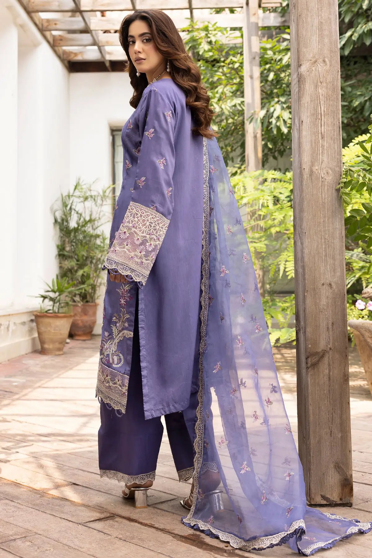 This beautiful 3 piece Ivana collection features a straight shirt with luxury thread work embroidery throughout with lace embellishment on the border, finished with full length embroidered sleeves. Paired with a farshi shalwar and the look is finished with an embroidered organza dupatta. Perfect Casual festive collection for this Eid.
