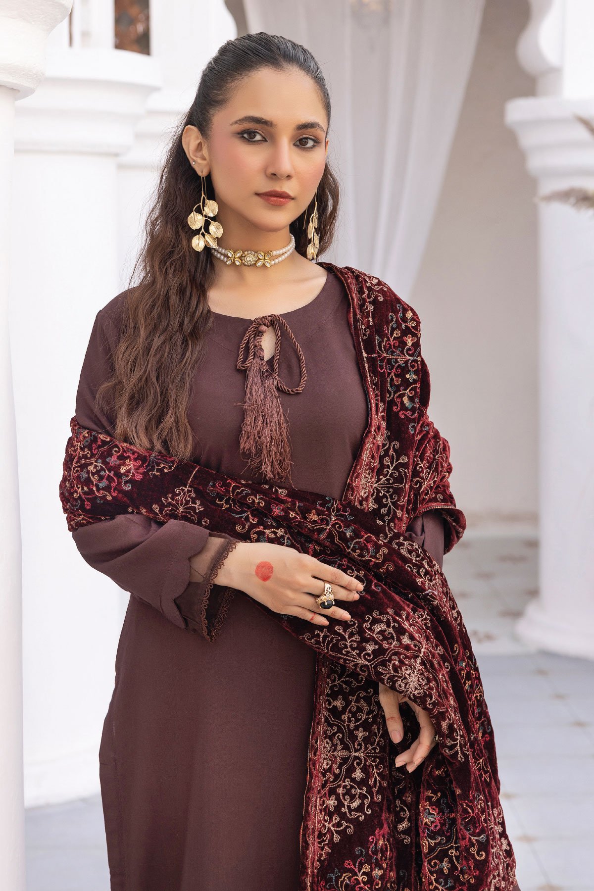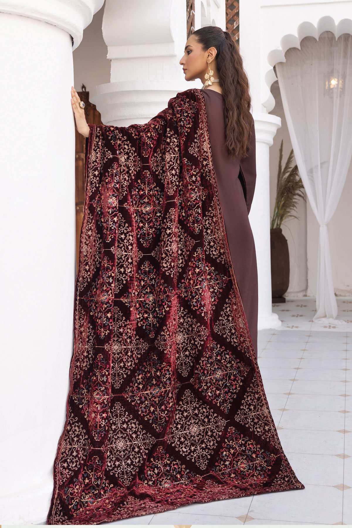 Jaan-b embroidered 3 piece suit with velvet shawl