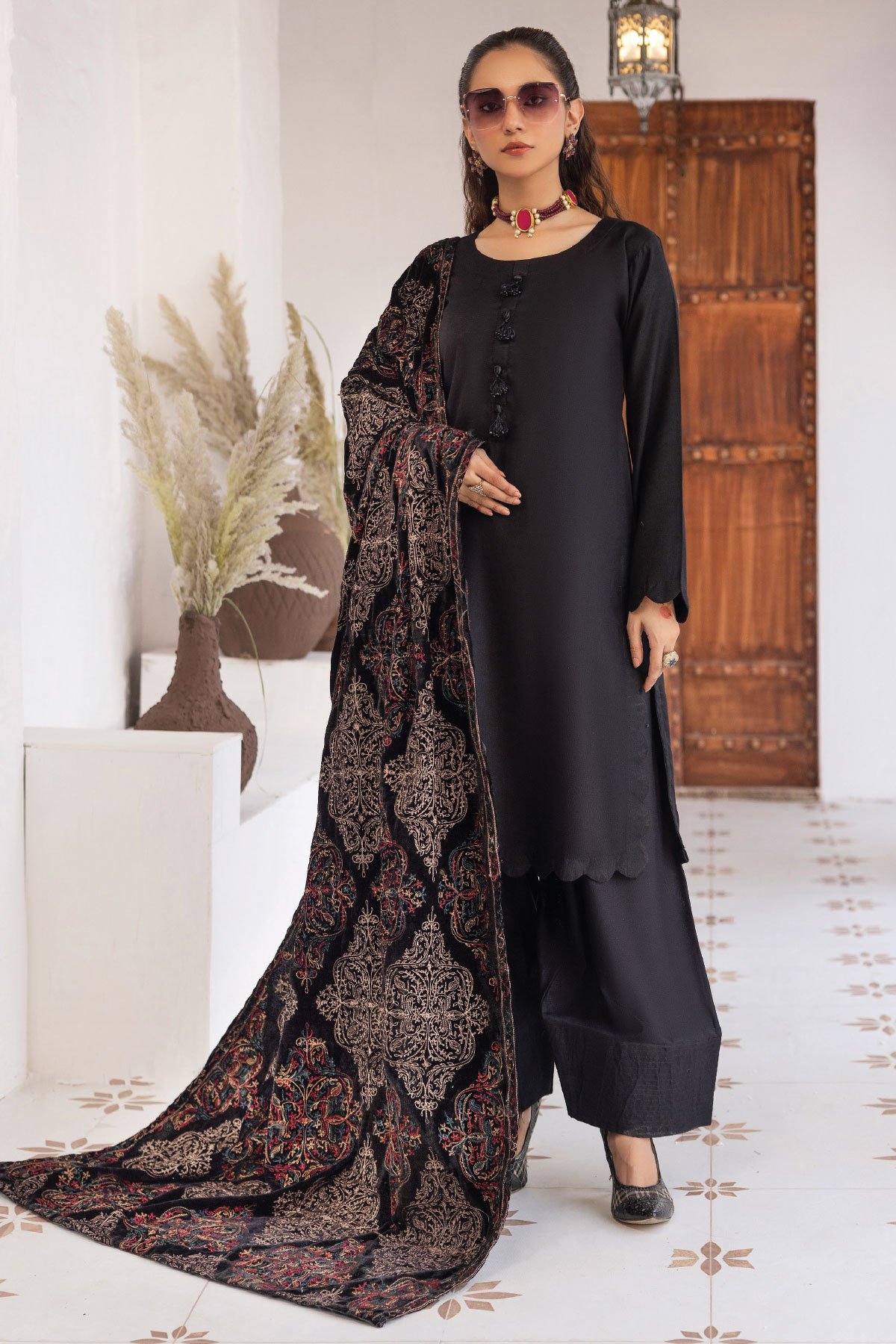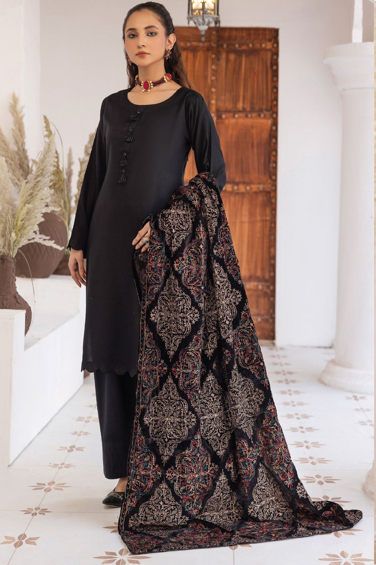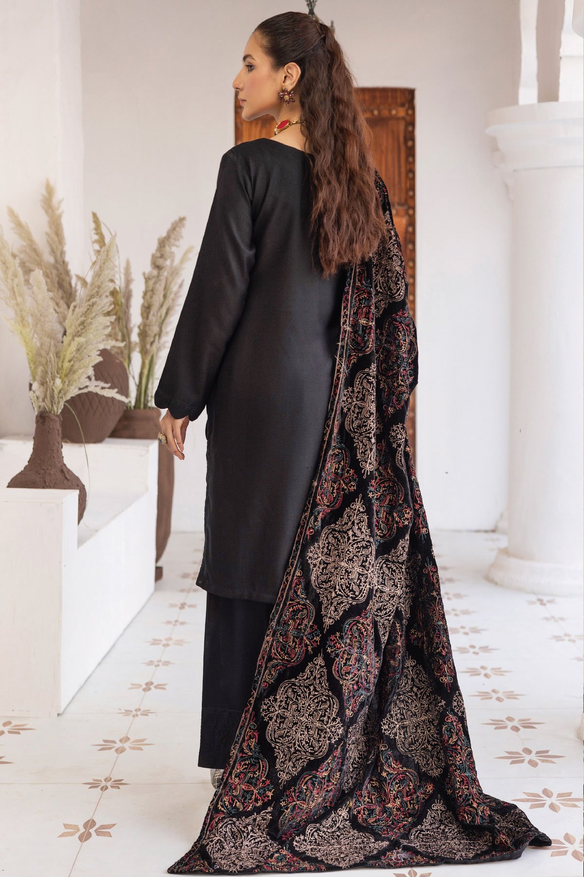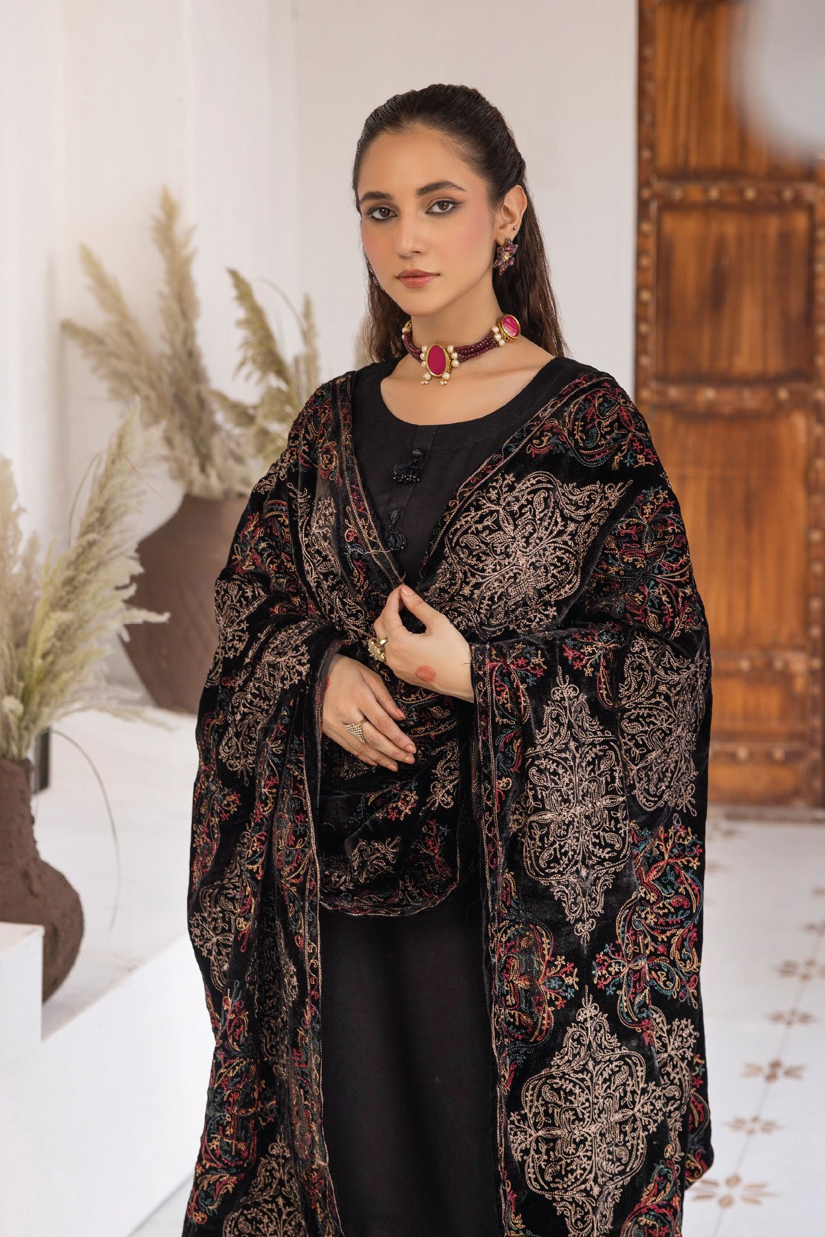 Jaan-b embroidered 3 piece suit with velvet shawl