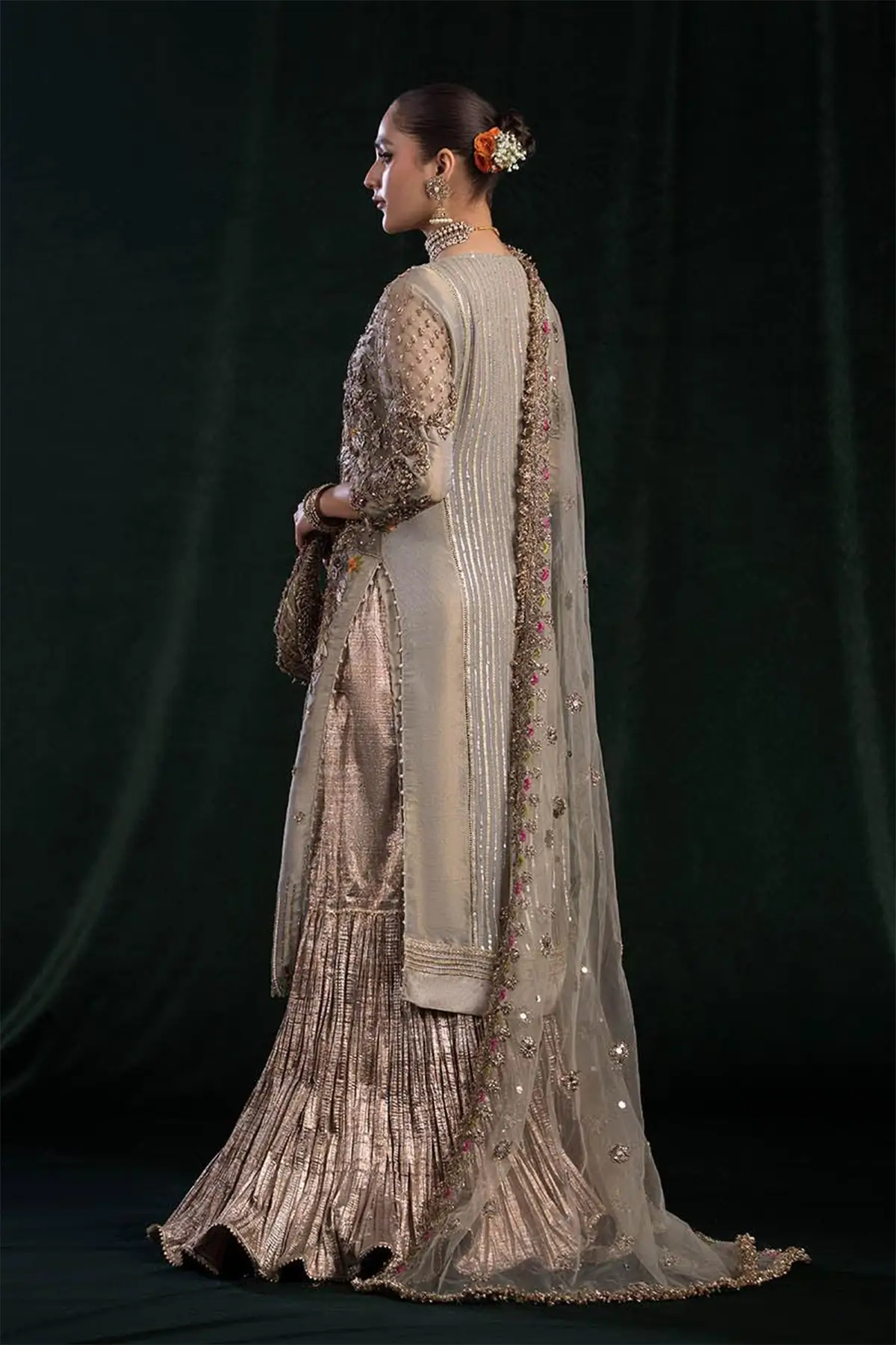 The Khudabaksh Collection celebrates the essence of traditional craftsmanship reimagined with modern elegance. A regal, handcrafted ensemble that blends traditional embellishment with luxurious fabrics. Every element is designed to reflect the signature its aesthetic — rich textures, artisanal detail, and timeless festive elegance.