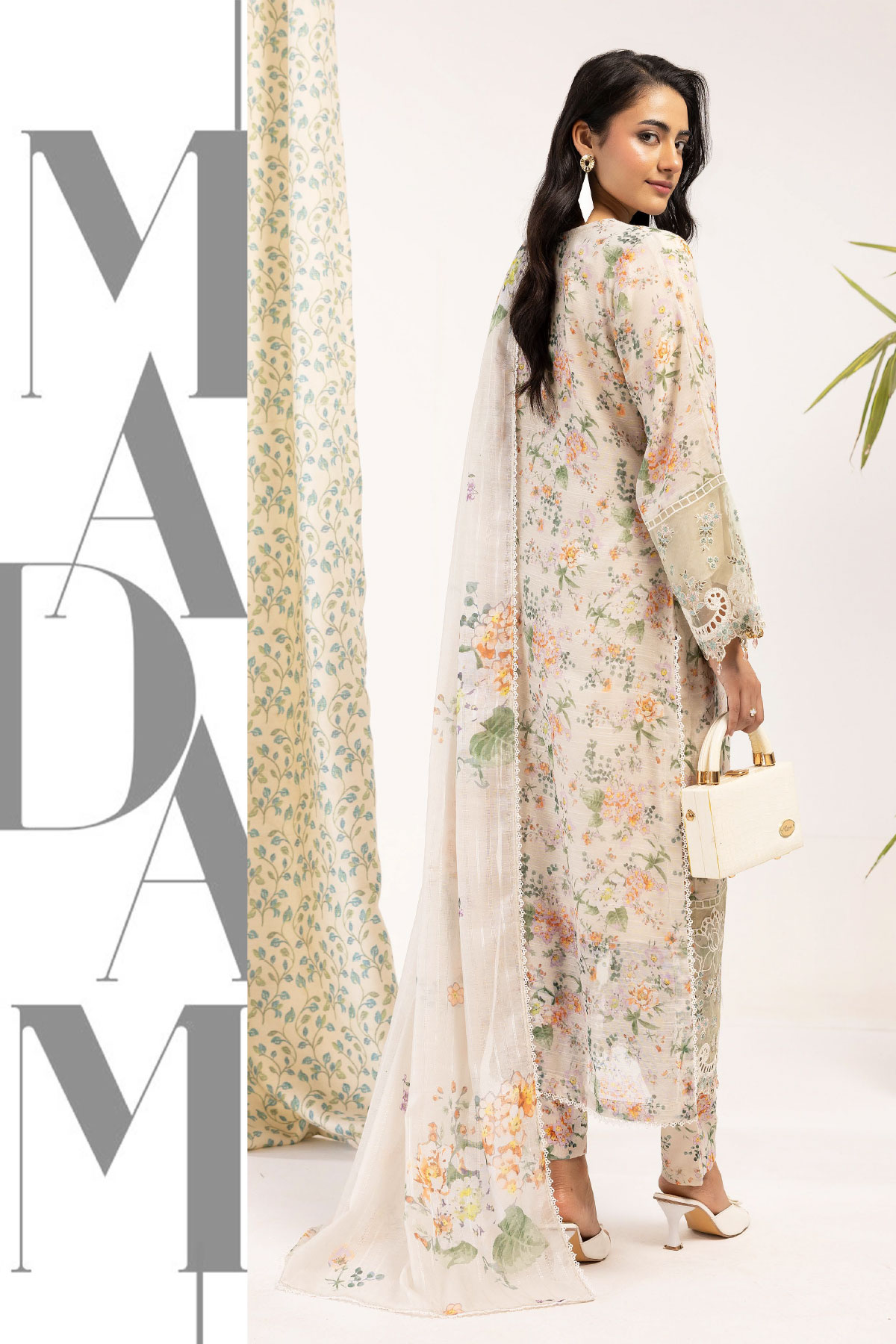 This beautiful 3 piece Libas e khas collection features a straight printed shirt with embroidered neckline on monar fabric, finished with an organza embroidered border along with full length embroidered sleeves. Paired with straight leg printed trousers and the look is finished with a digital printed dupatta.