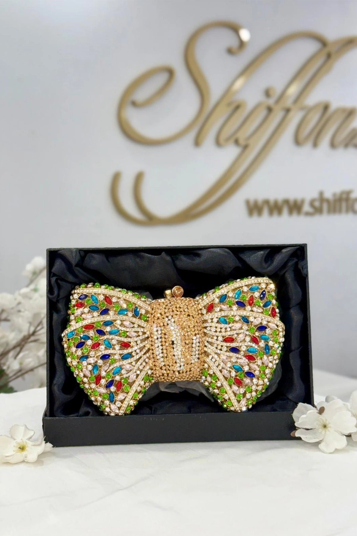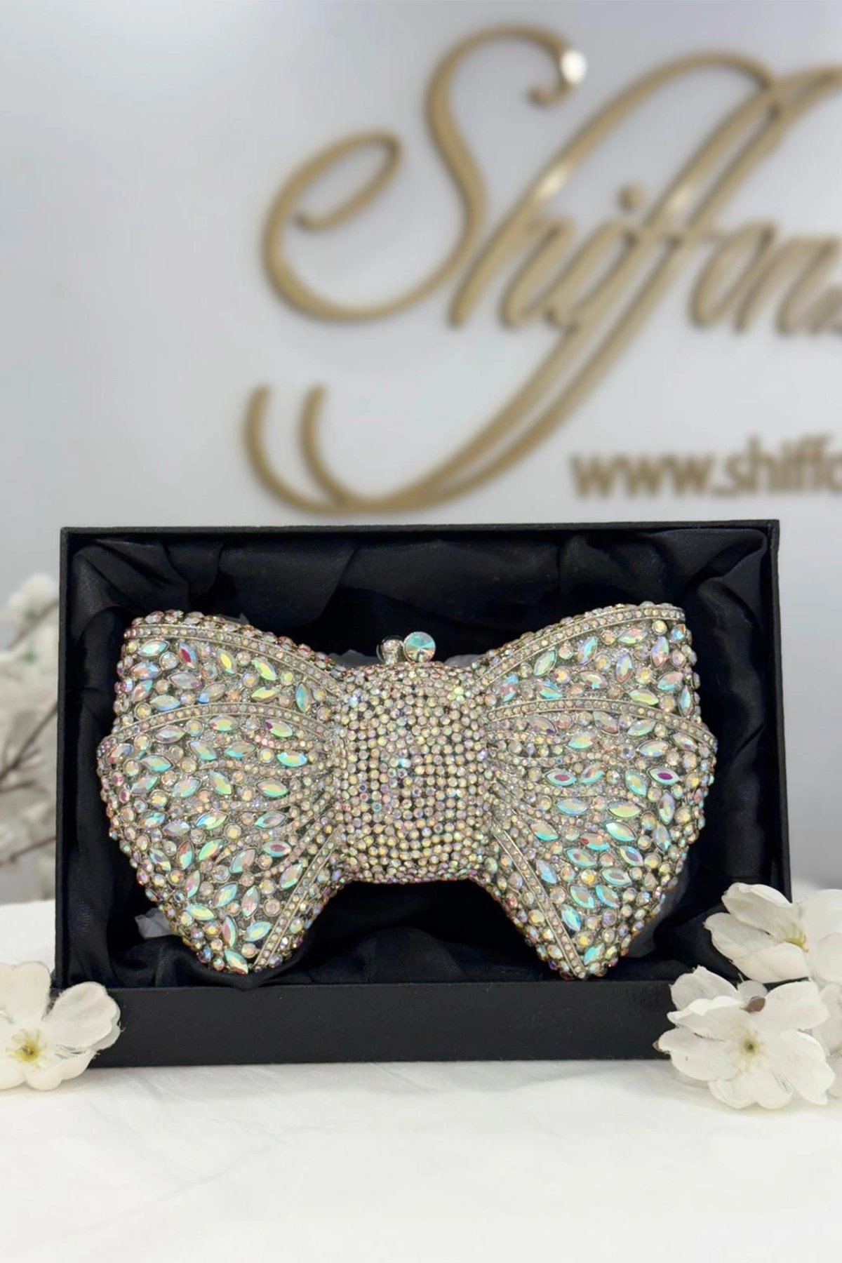 Make a statement at your next event with our elegant evening clutch, featuring a charming bee / bow accent that adds a touch of whimsy and sophistication. Crafted from luxurious material. this clutch exudes timeless style, perfect for complementing any evening attire.