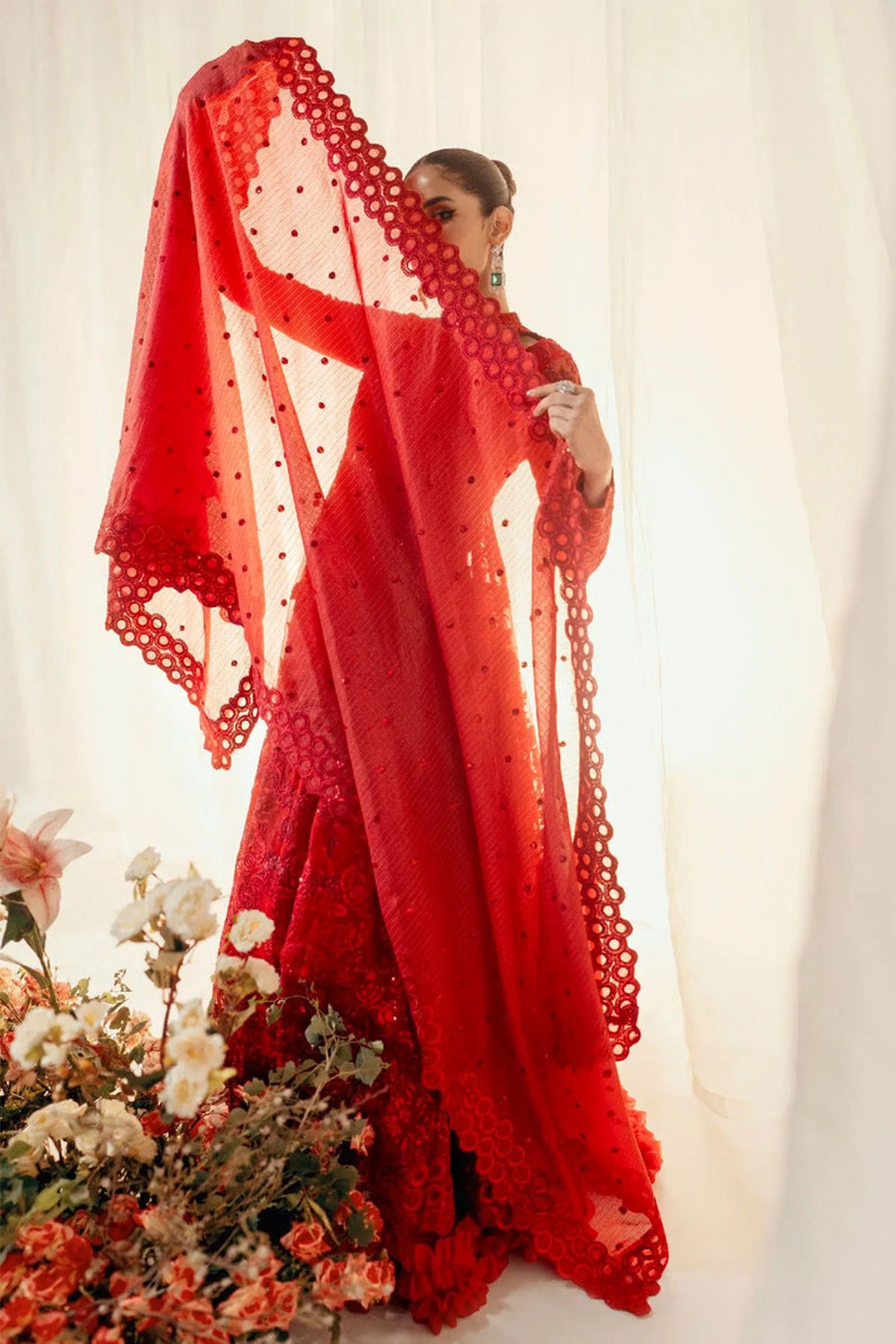 Crimson inspired 3 piece embroidered plazo suit