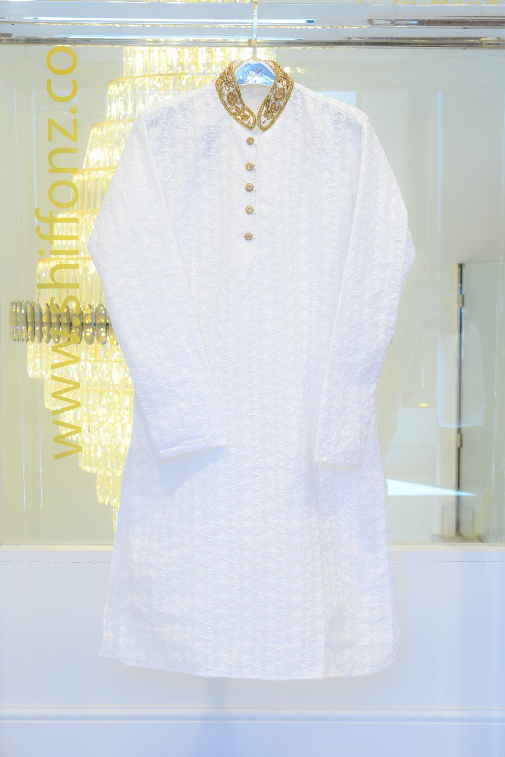 Men’s chikan suit with gold embroidered collar