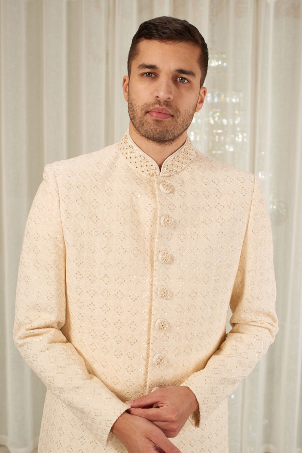 Men’s embroidered sherwani with dupatta