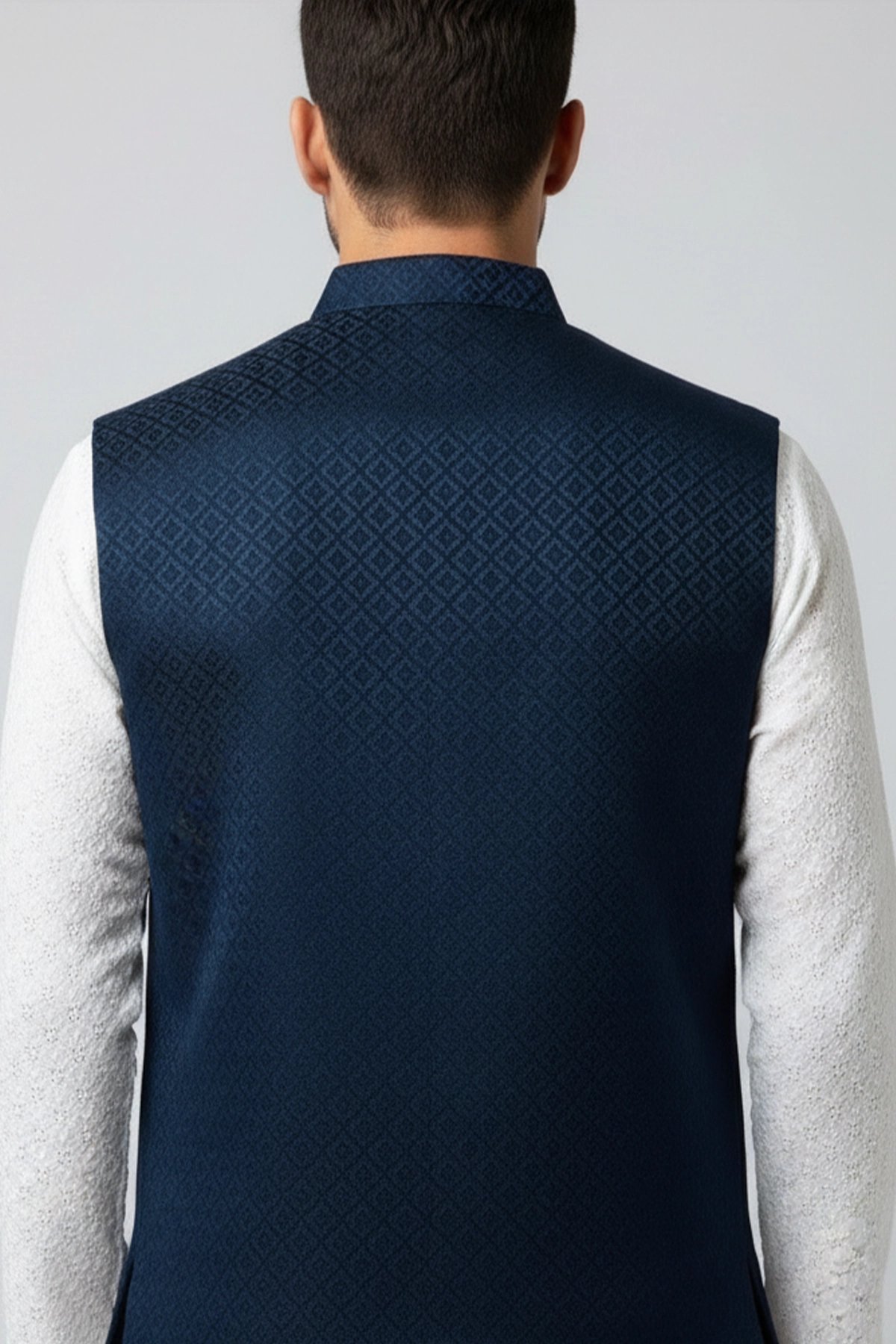 This beautiful waistcoat is crafted from a blend of brocade fabric enhanced by moulded buttons and mandarin collar along with a straight cut that fits easy around the chest and then tapers at the waist creating a broad shoulder-slim waist look. It is perfect for formal occasions as well as layering over basic clothing. Note: Kurta pyjama shown in the picture is not included.